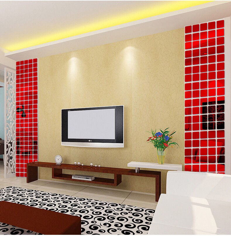 100 шт. маленькие квадратные мозаичные наклейки для стен, самоклеящиеся, акриловые зеркальные наклейки для домашнего декора, для гостиной