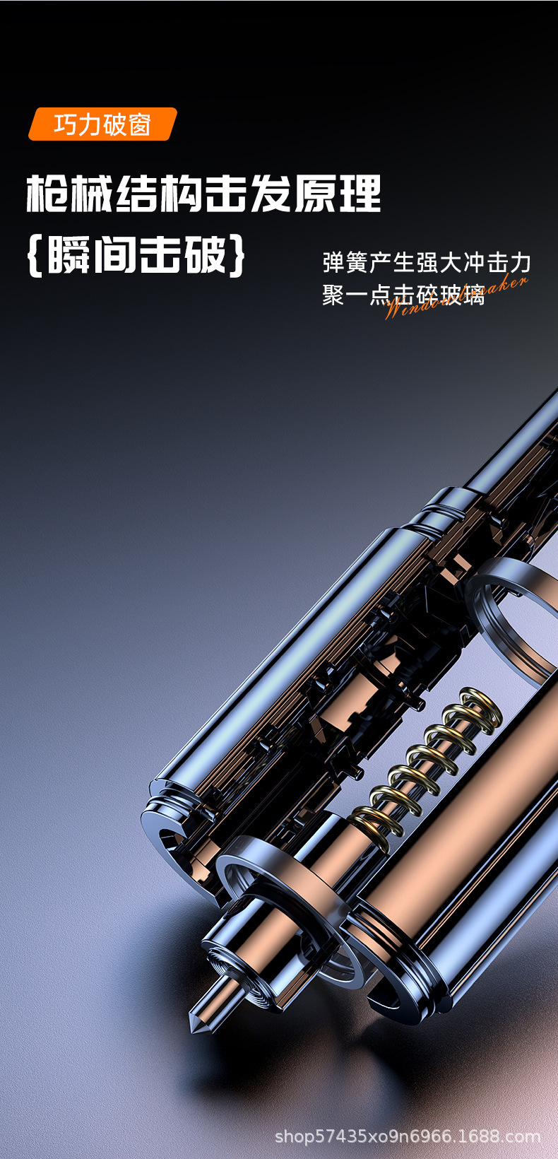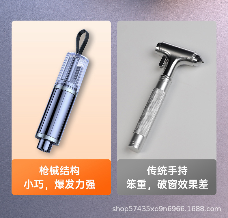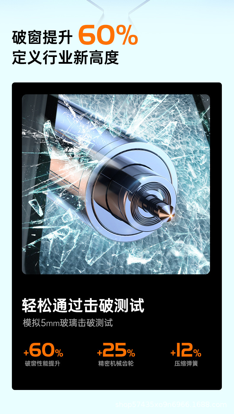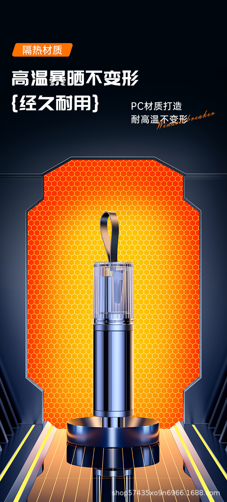 安全锤材质:外壳ABS+工程熟料,锤头钢针为钨钢材质。