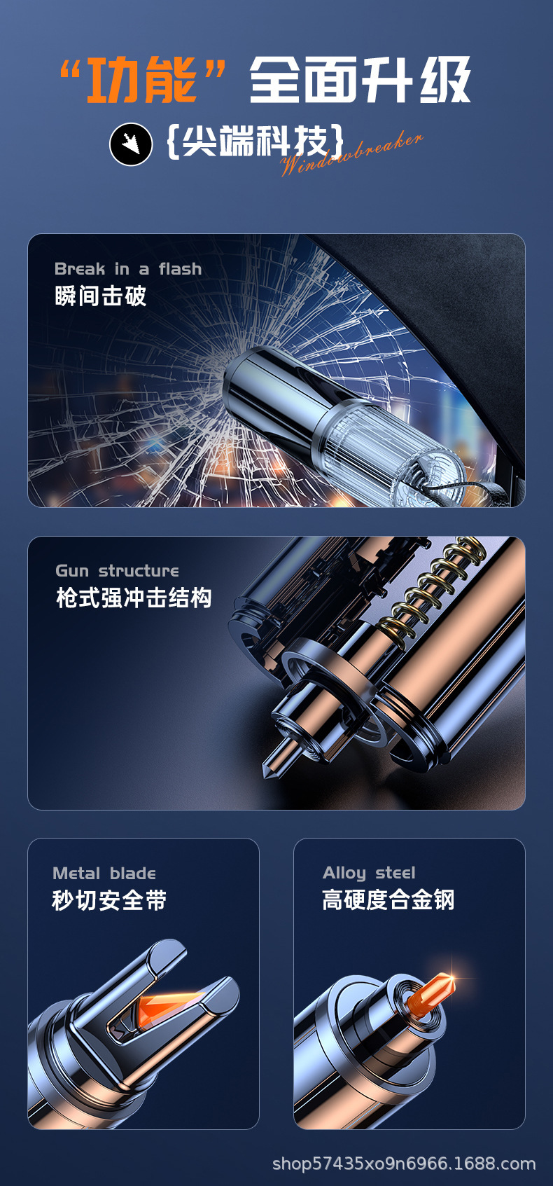 二合一多功能安全锤:一端安全锤,一端割安全带刀