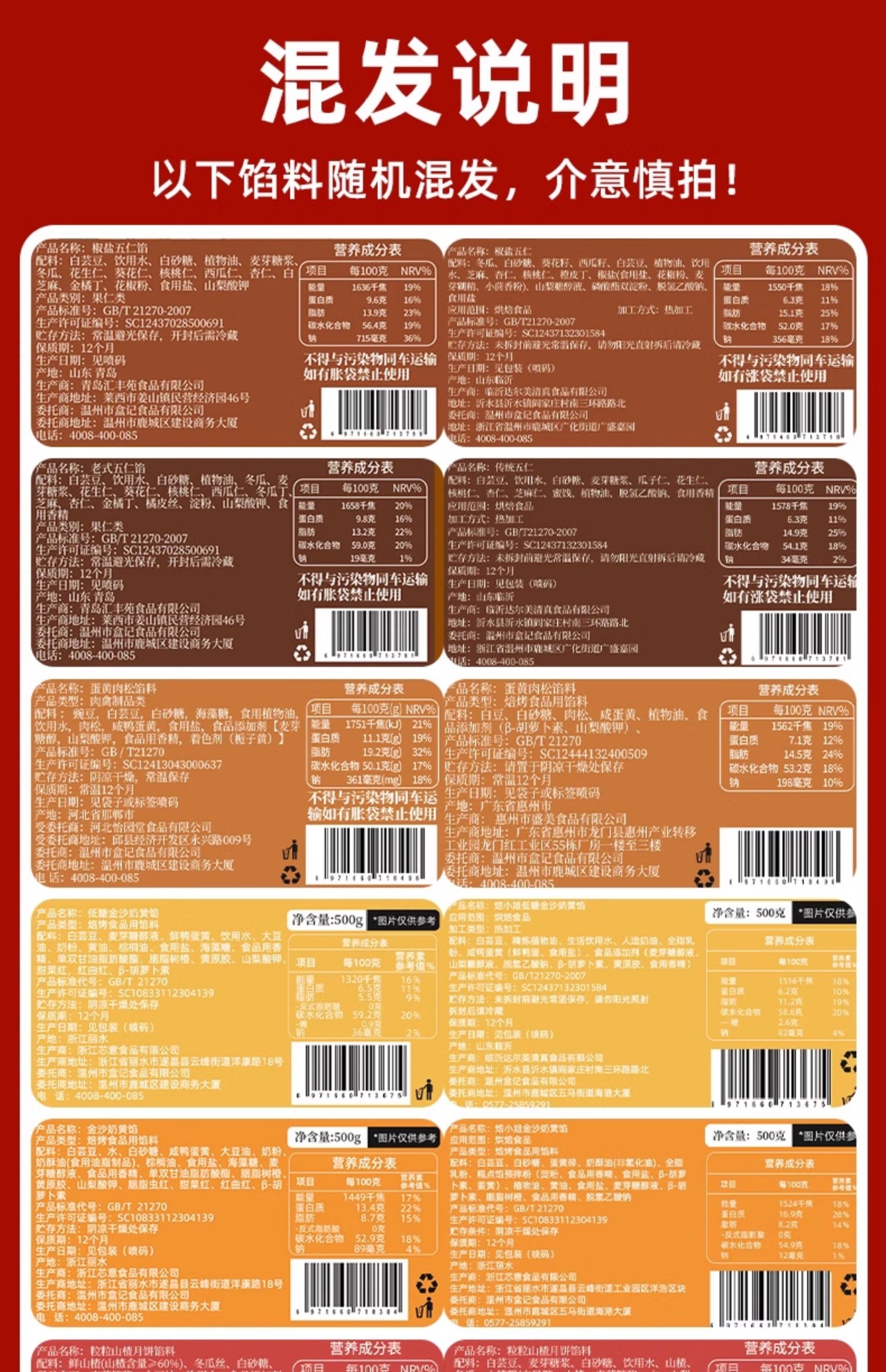 📦 | 0.5kg - low sugar salt and pepper five-nut filling | ¥22.13 / ≈ 267 ₽ | 10200 | 6120082250866 | |