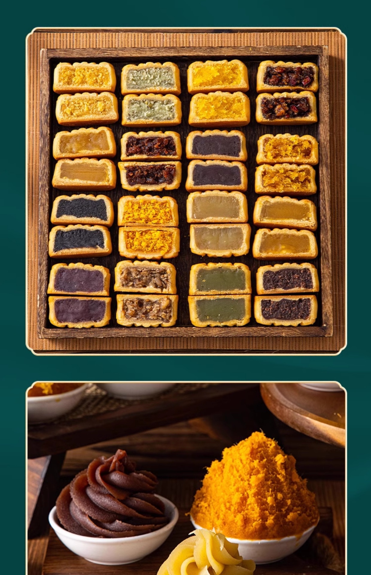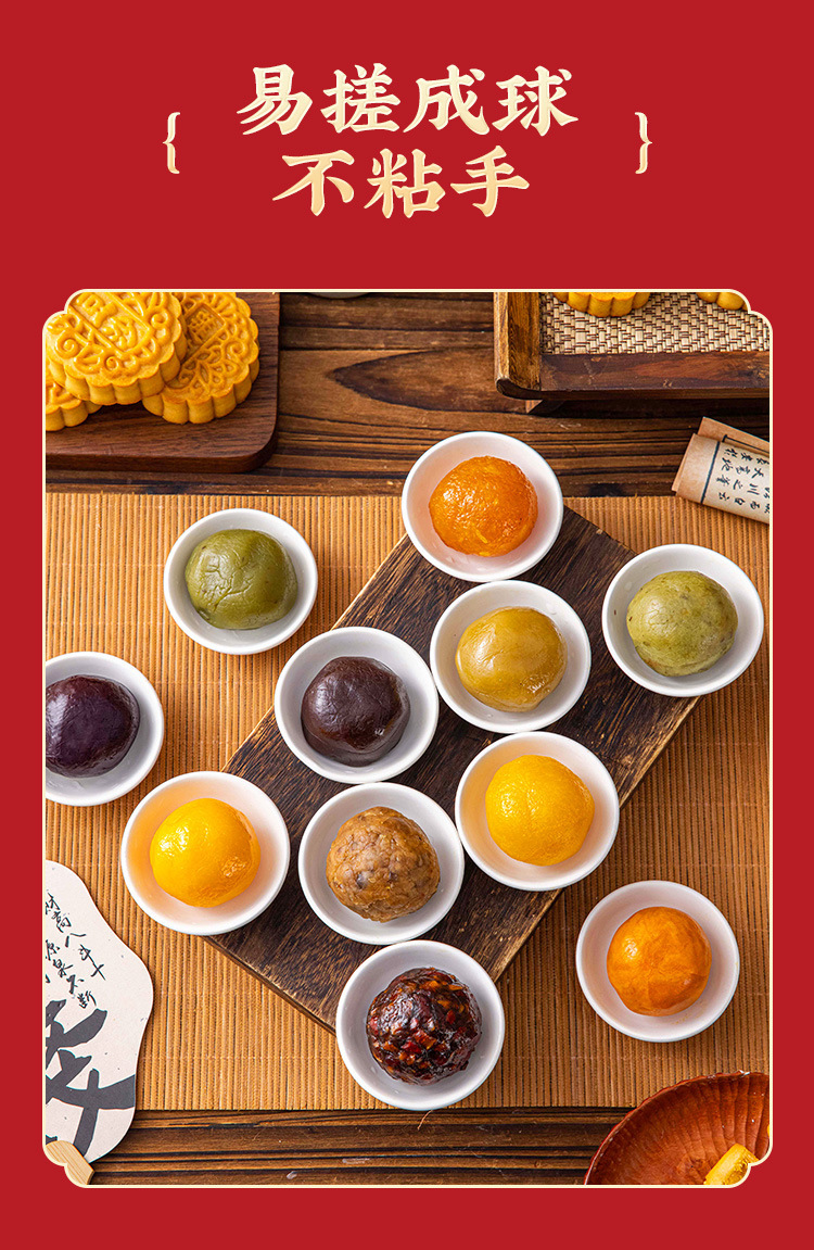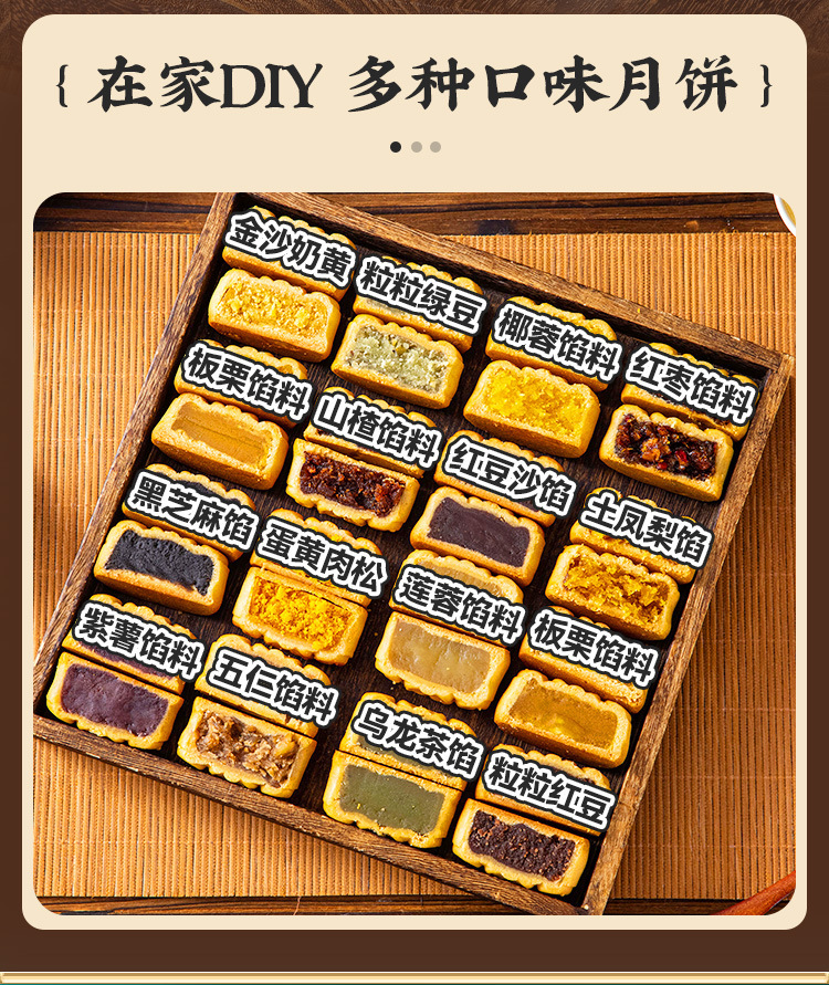 Начинка для лунных пирожков с низким содержанием сахара: паста из красной фасоли, яичный желток, мясной волокно, зеленый крем, паста из лотоса, фиолетовый сладкий картофель, ингредиенты для домашних булочек, запеченные черные кунжуты