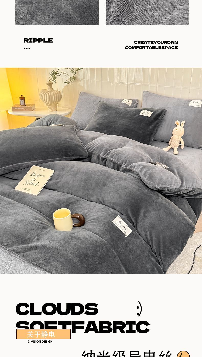 ![]() | 【class a mother & baby grade thickened milk velvet】gentleman grey + silver grey --- direct sales promotion | 1.8 bed four-piece set [quilt cover 200*230cm]---direct sales | ¥74.12 / ≈ 893 ₽ | 21000 | 6014098296981 | |