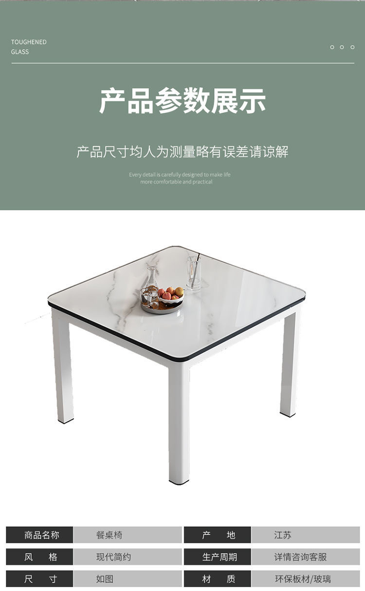 Закаленный стеклянный обеденный стол и стулья для домашнего использования, маленький квадратный стол для обеда, простой арендованный дом, второй этаж