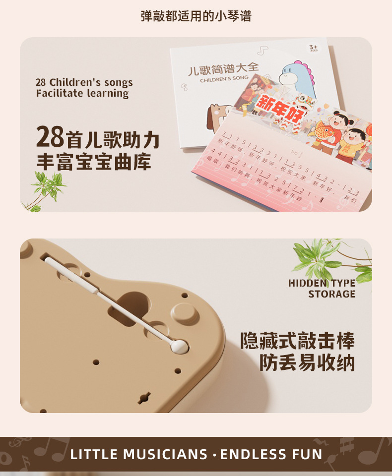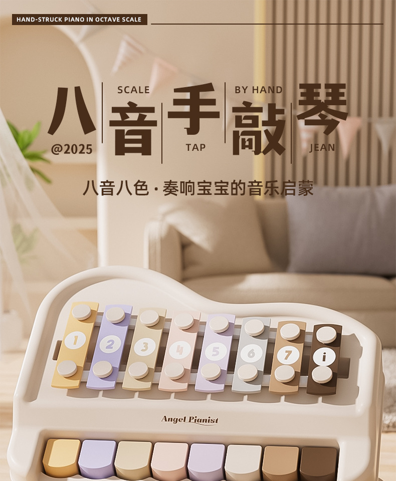 Двухвостный музыкальный ручной детский пианино с восемью нотами, музыкальный инструмент для раннего обучения детей