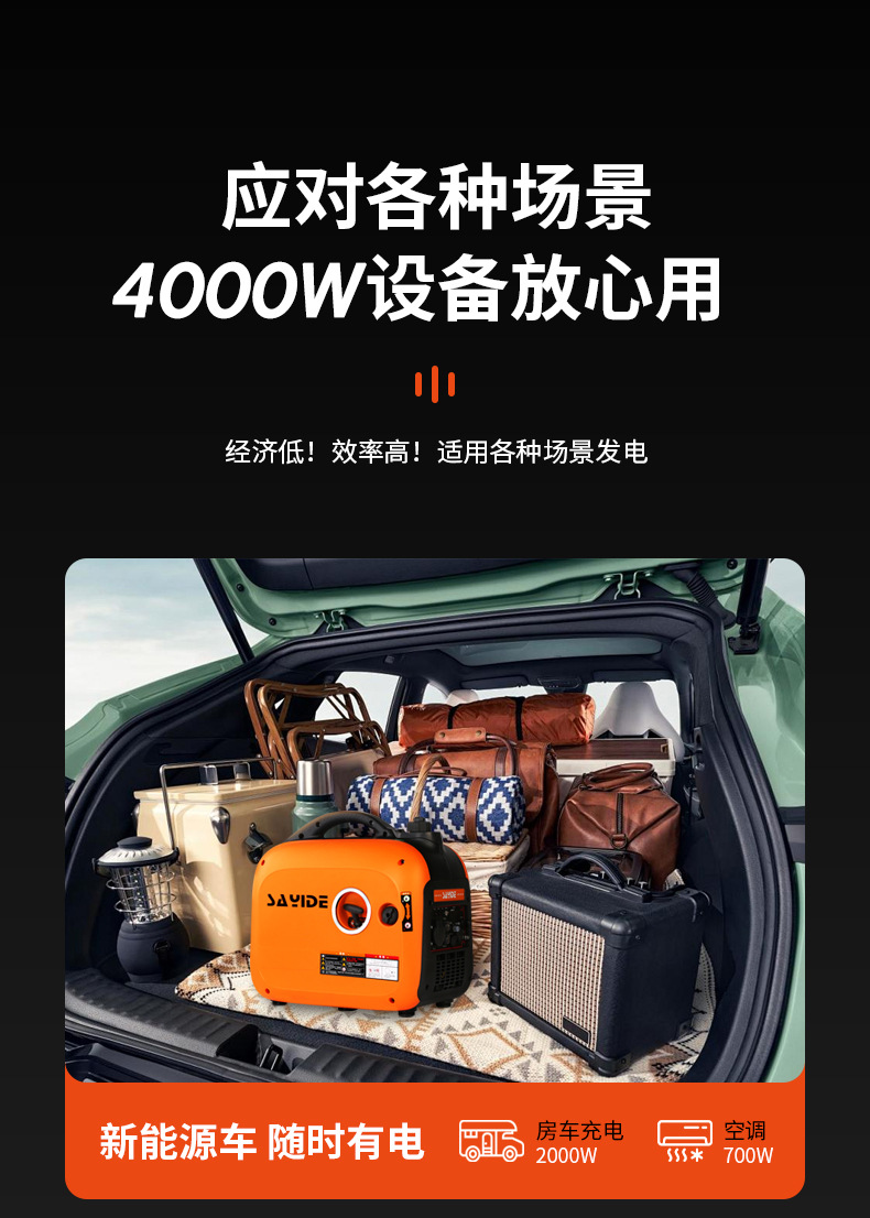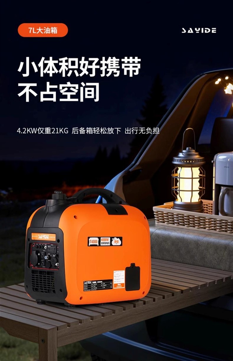 Бензиновый генератор, тихий, 4КВт, с переменной частотой, 220В, малый, портативный для домашнего использования и кемпинга