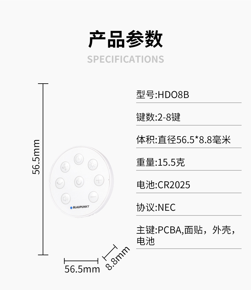 Популярный Hd08B магнитный ультратонкий пульт RF433M круглый 2.4g пульт для электрического вентилятора индивидуальный