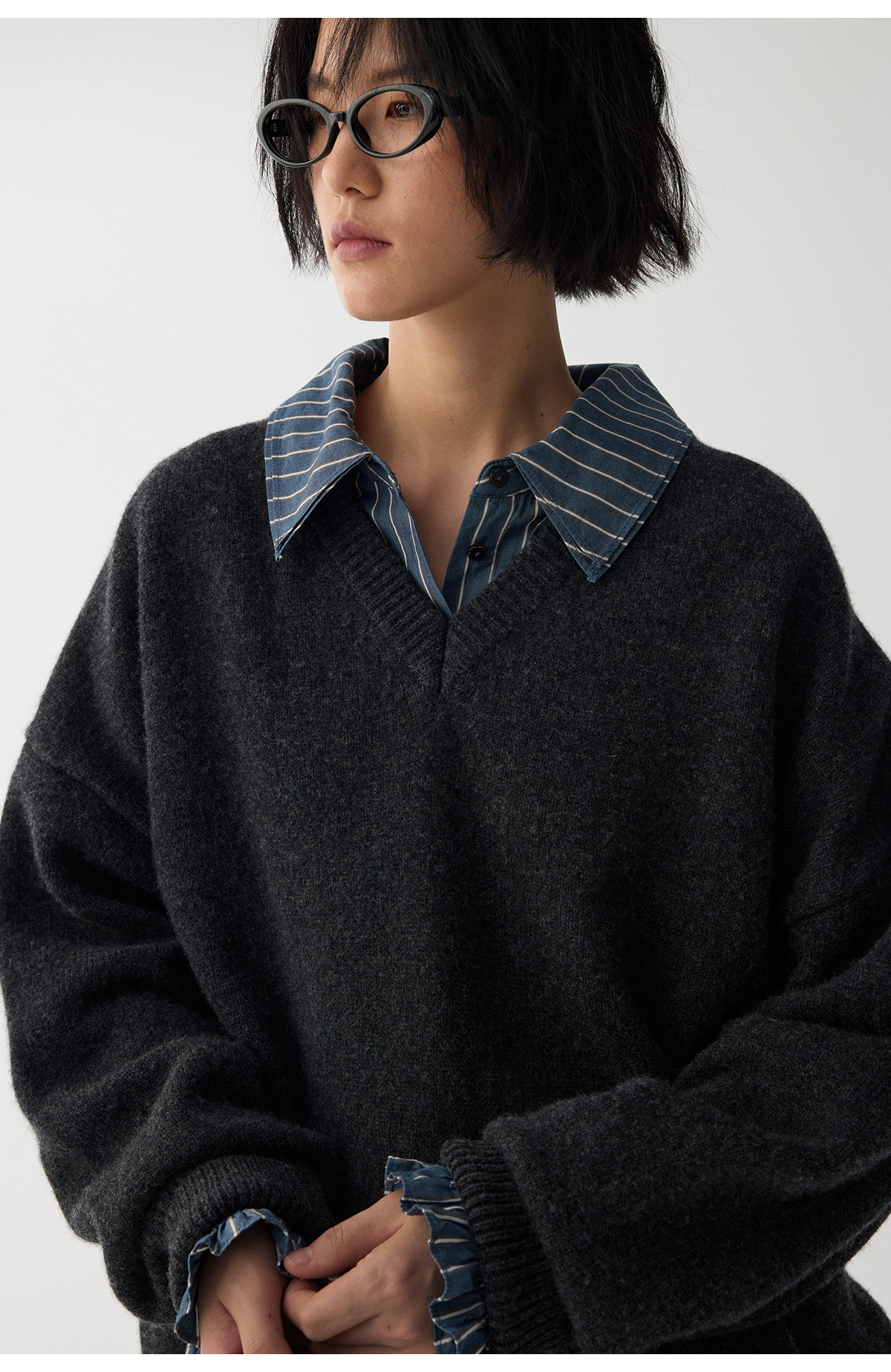 Haverice Restaurant Nishino свитер с классическим V-образным вырезом, свободный, вязаный, для женщин