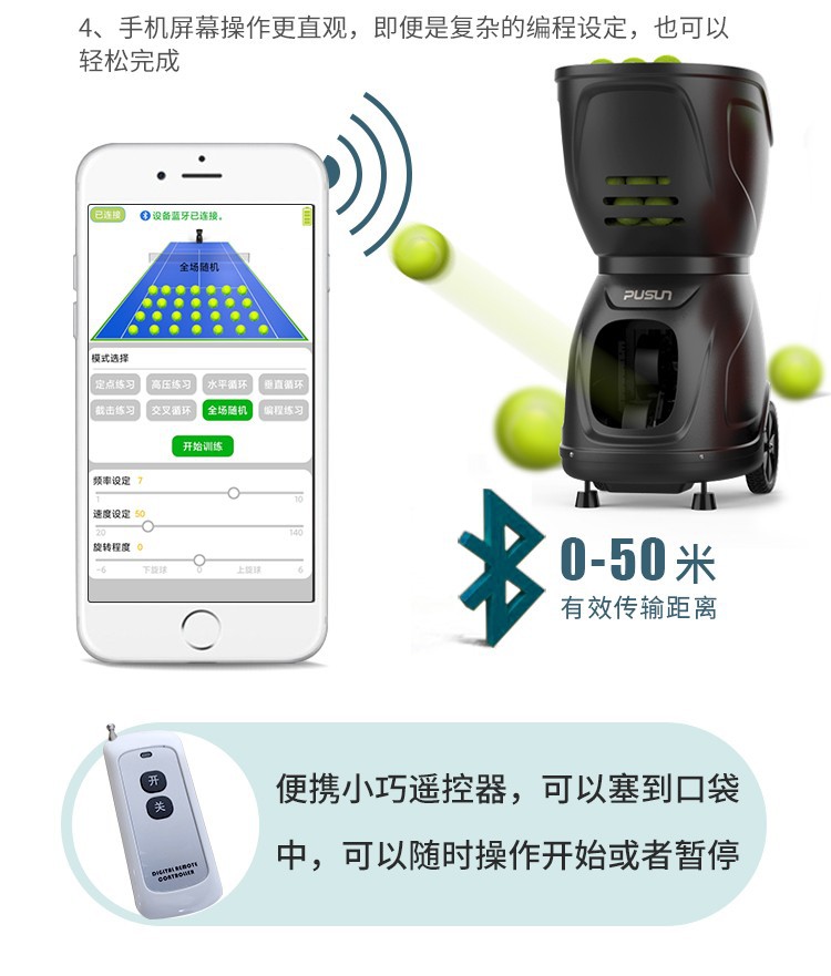 Частота мяча 1.8 -8 seconds/ball (depending on settings on app)