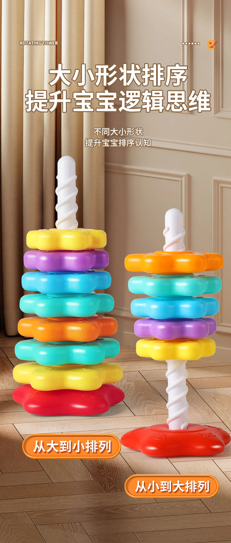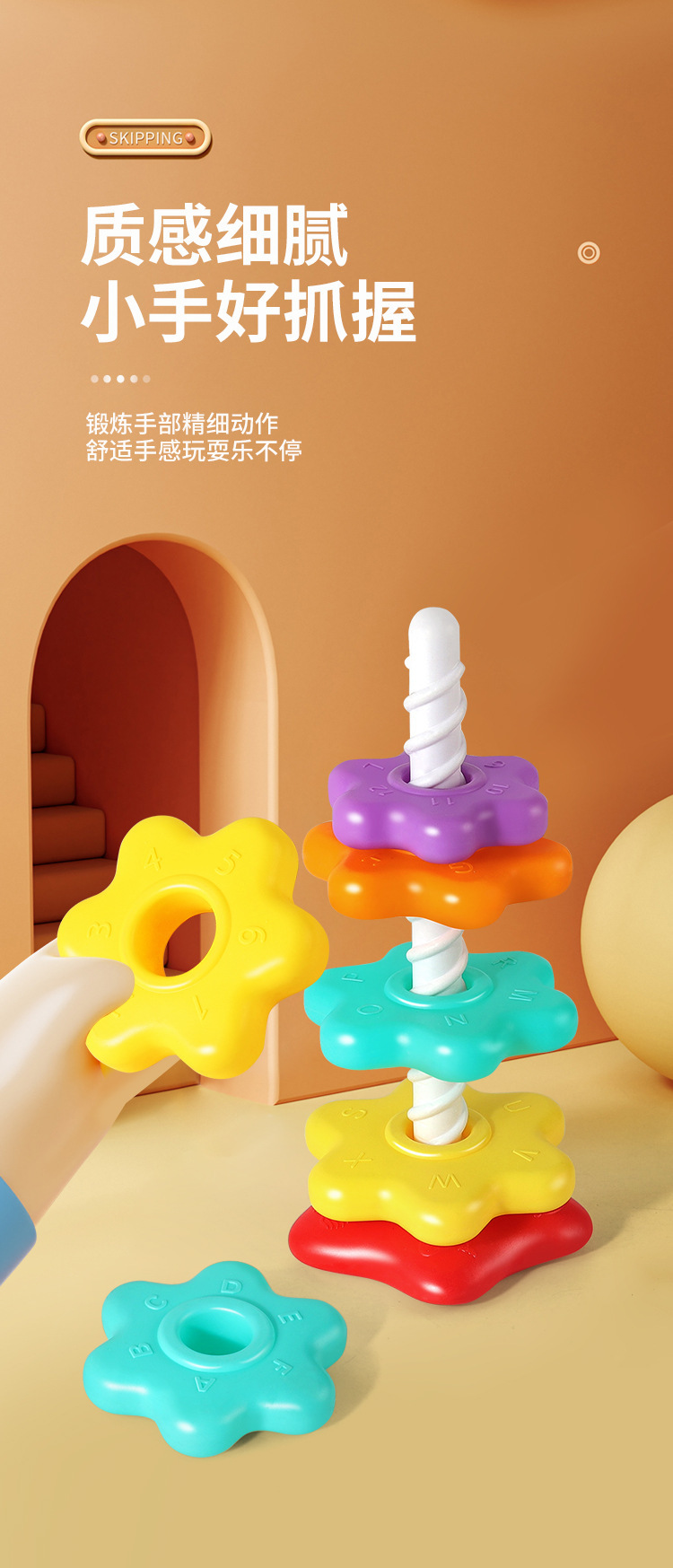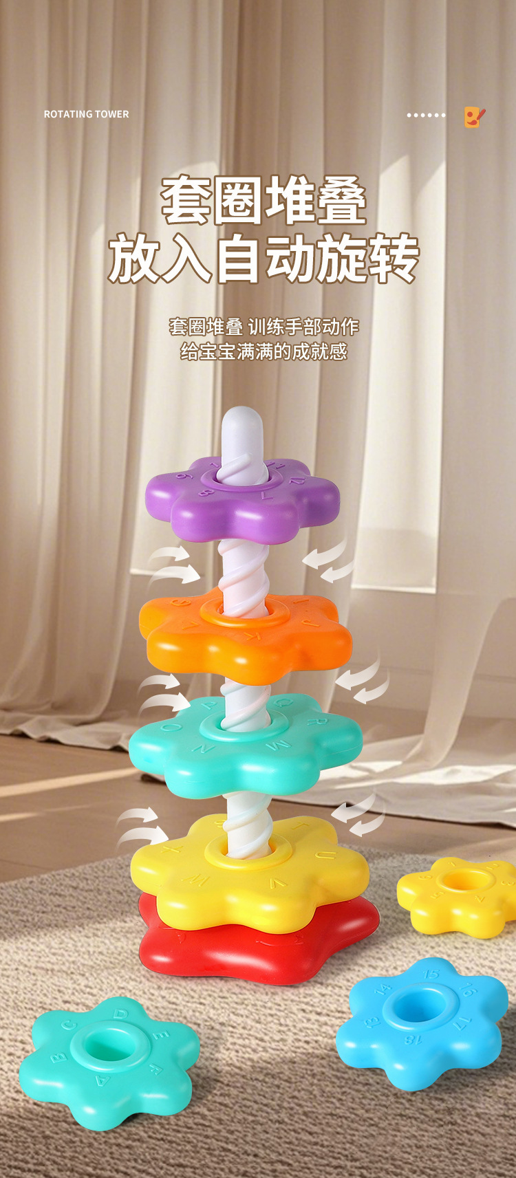 Детская радуга Спин и Stack игрушка Цветные кольца для stacking Образовательная игрушка для раннего обучения