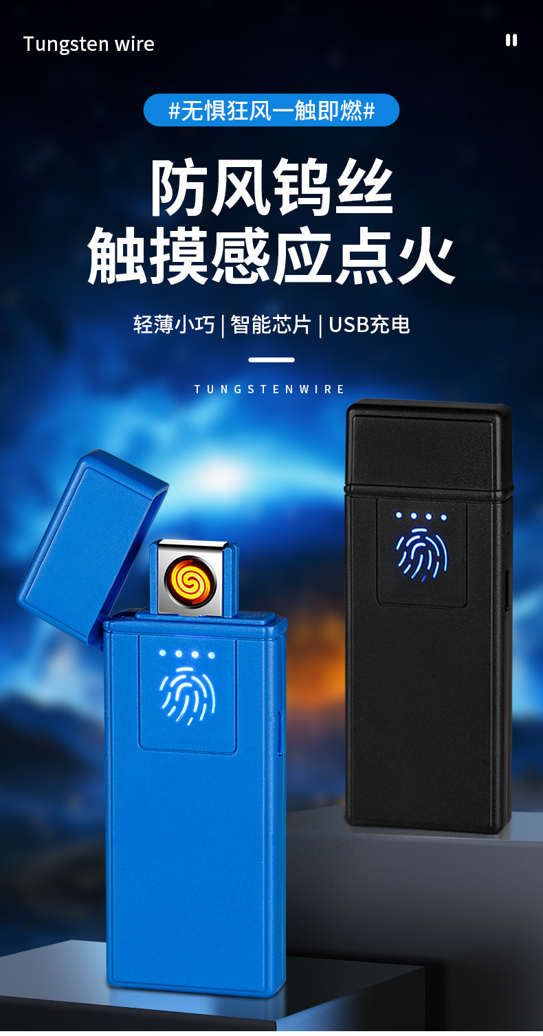 Новый сенсорный зажигалка USB зарядка двусторонний зажигание ветрозащитный ультратонкий креативный рекламный подарок оптовая продажа