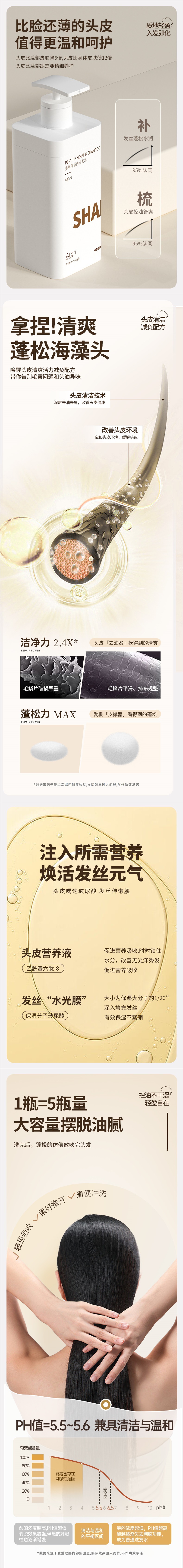 [Рекомендуется K General & Central Mom] Полипептидный шампунь, кератин, контроль масла, пушистый, против перхоти, долговечный аромат, крем-шампунь