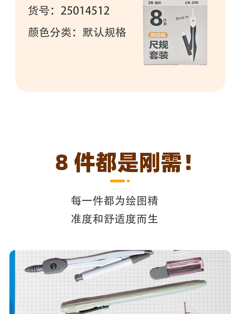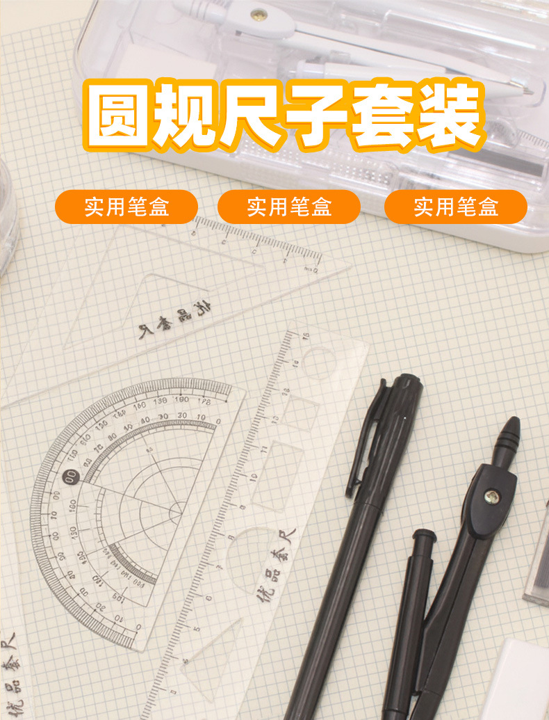 Набор компаса и линейки, 8 предметов для учеников начальной и средней школы, для учебы и экзаменов, компас, линейка, треугольник, транспортир