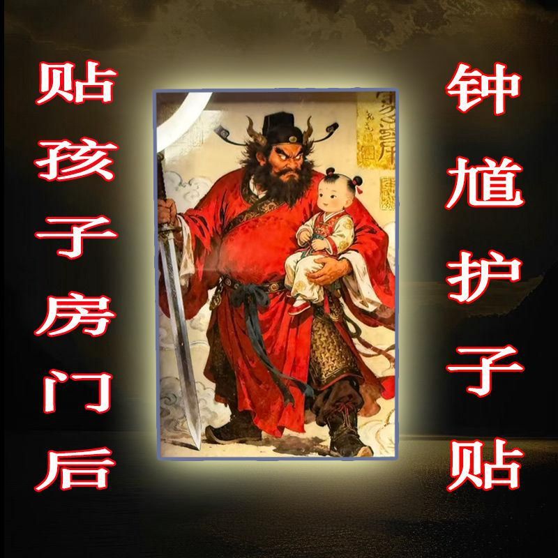 Акриловая наклейка на дверь с изображением Чжун Куэ, защищающего детей, даосская живопись Чжун Куэ для спальни и детской, символизирующая удачу, мир и богатство
