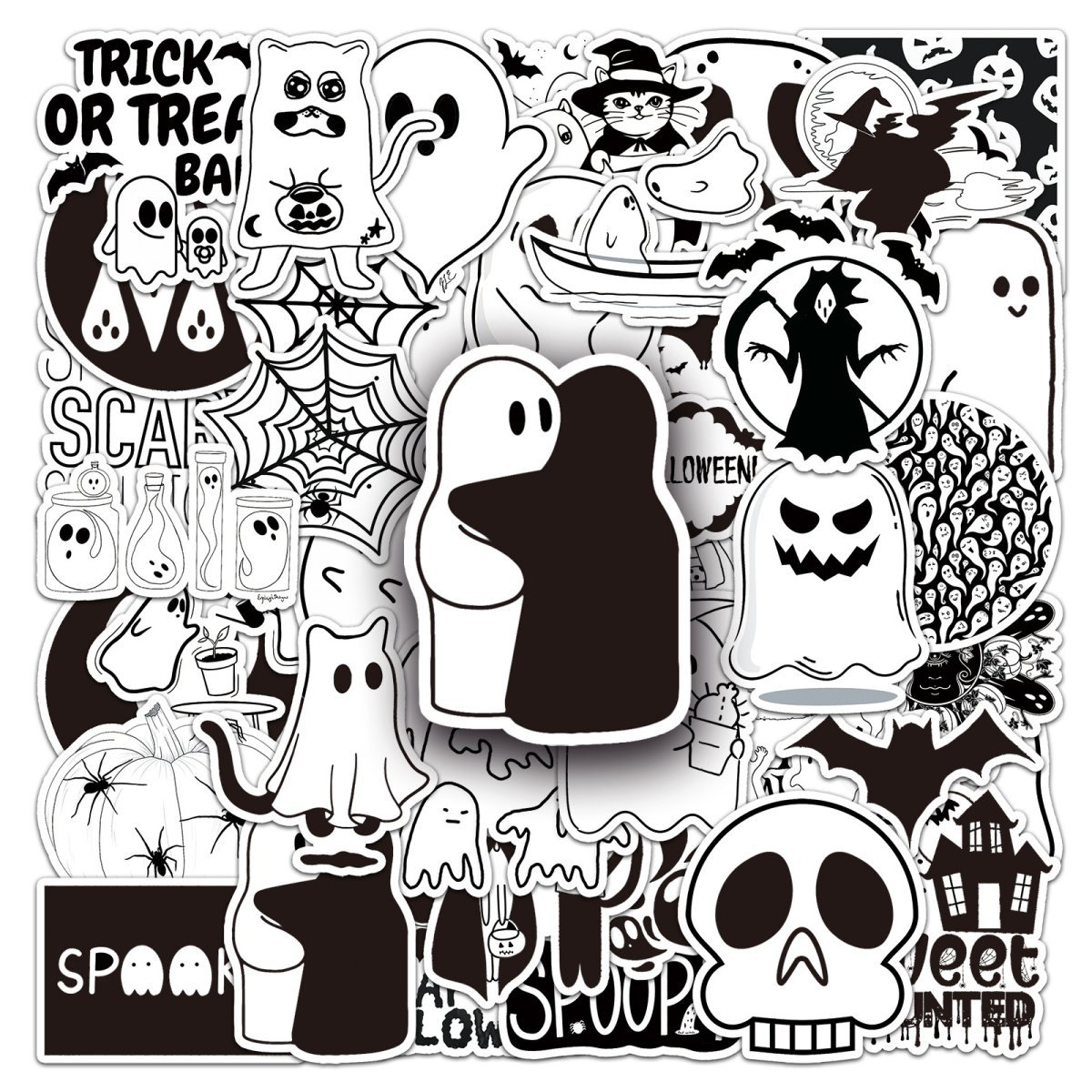 Наклейки на чемодан Хэллоуин в черно-белом цвете, водостойкие, граффити, для скейтборда, компьютера, планшета, оформления справочника