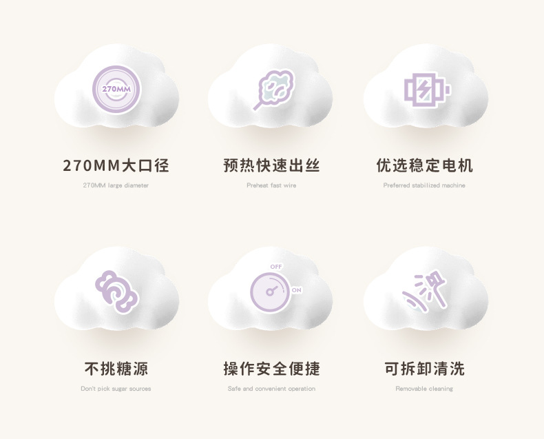 ![]() | British standard marshmallow machine (without sugar, can be customized with plugs for different countries) | 10 bamboo sticks, 1 pack of colored sugar, 1 sugar spoon | ¥52.99 / ≈ 639 ₽ | 9930 | 6120494163492 | |