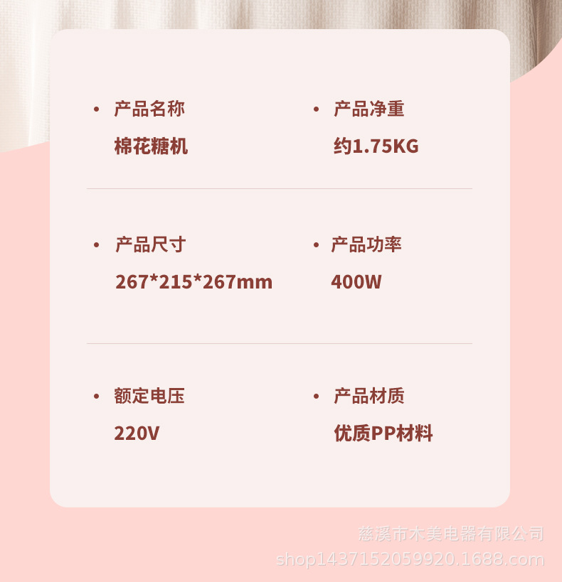 ![]() | Rose purple national standard cotton candy machine | 50 bamboo skewers, 10 packs of colored sugar, 1 sugar spoon | ¥73.9 / ≈ 891 ₽ | 500 | 6120494163502 |