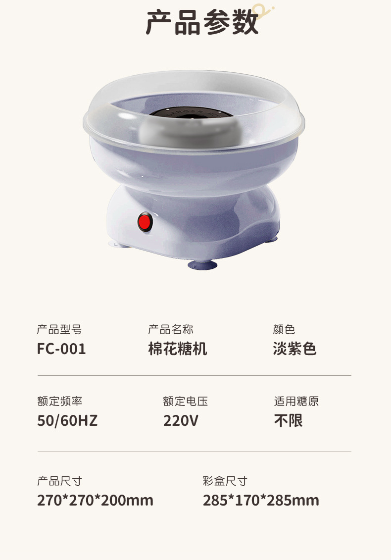 ![]() | Rose purple national standard cotton candy machine | 30 bamboo skewers, 3 packs of colored sugar, 1 sugar spoon | ¥56.9 / ≈ 686 ₽ | 497 | 6120494163499 | |