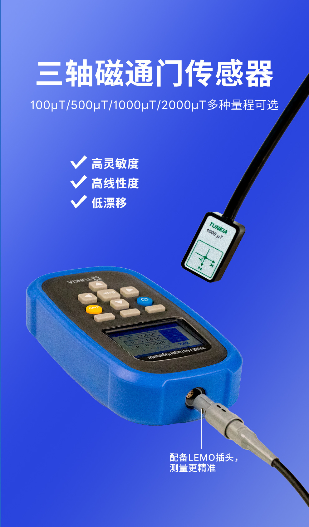 Ручной трехосный магнитометр Tianheng Tm4300B, высокоточный измеритель слабых магнитных полей