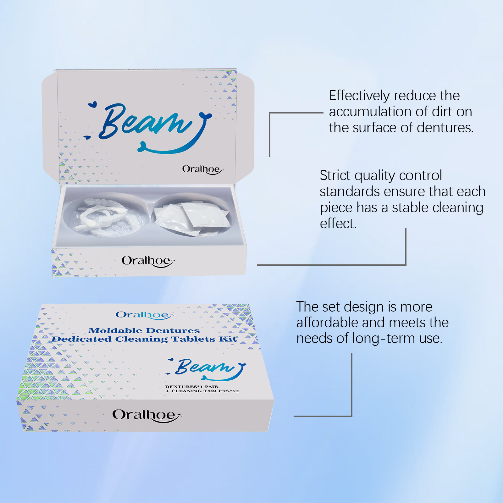 Набор таблеток для чистки съемных протезов Oralhoe, материал в клетку, улучшение эстетики улыбки, уход за зубами в отпуске