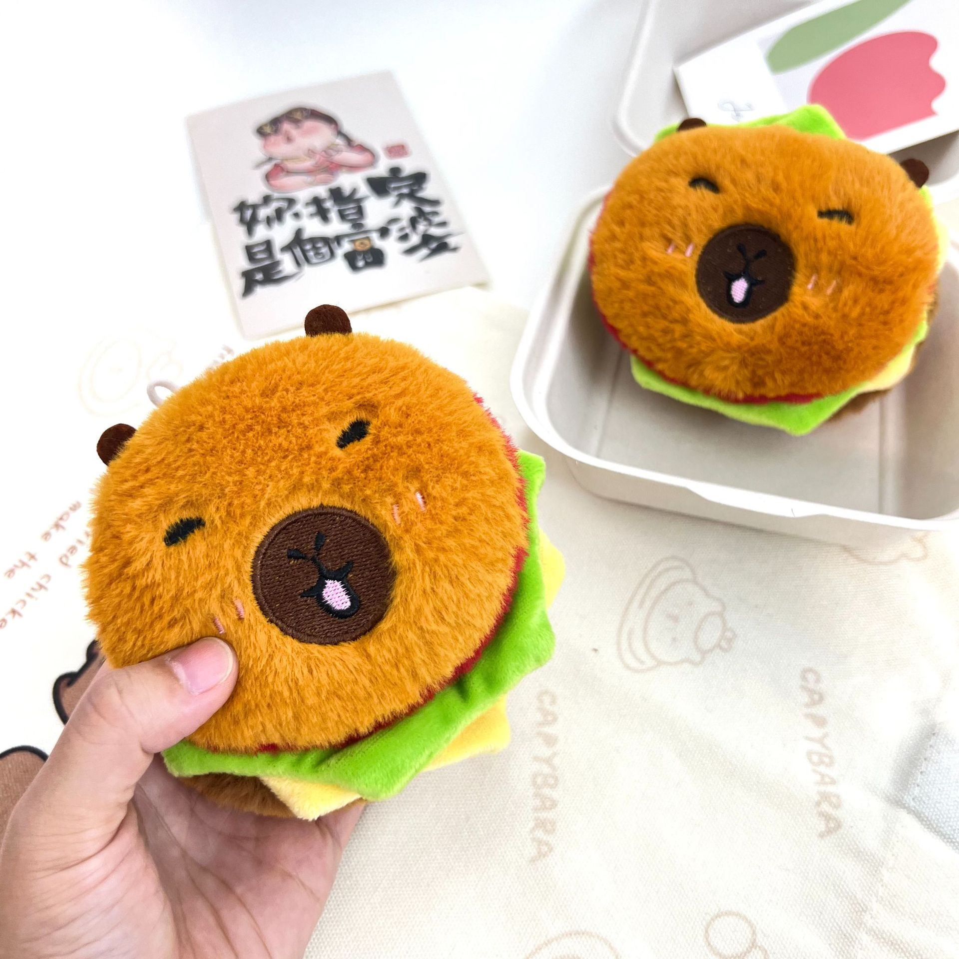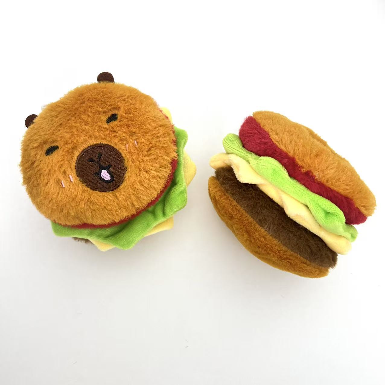 Очень большая толстая плюшевая игрушка в виде гамбургера, пищащий брелок, креативная игрушка в виде гамбургера, капибара