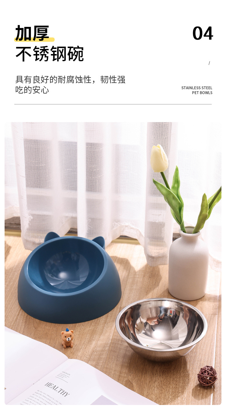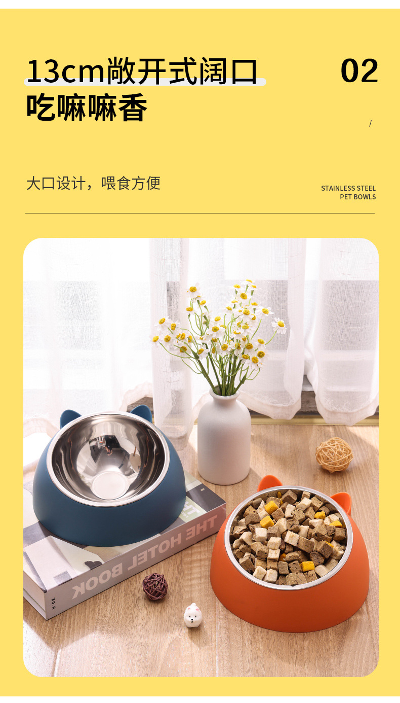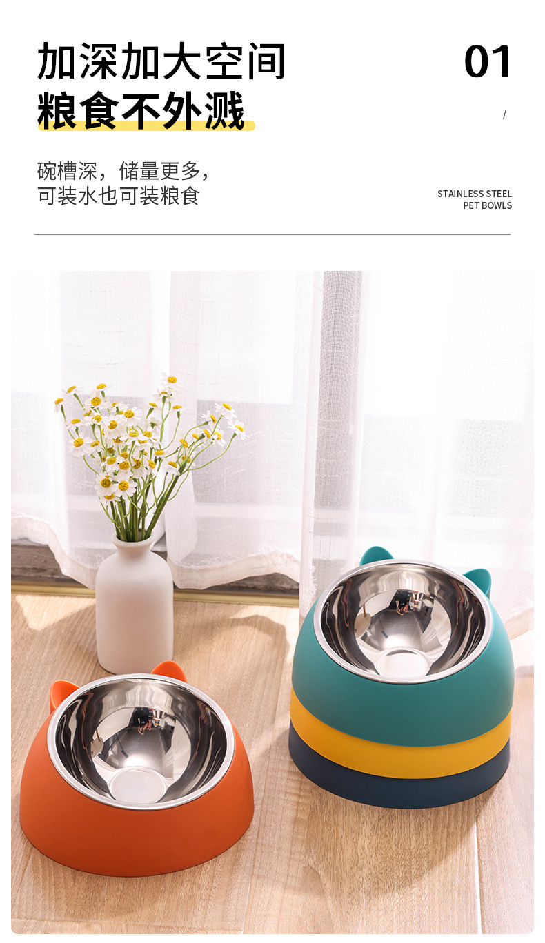 Двойная чаша из нержавеющей стали для домашних животных, защищающая шейный отдел, предотвращает переворачивание, милая чаша для еды и воды для кошек