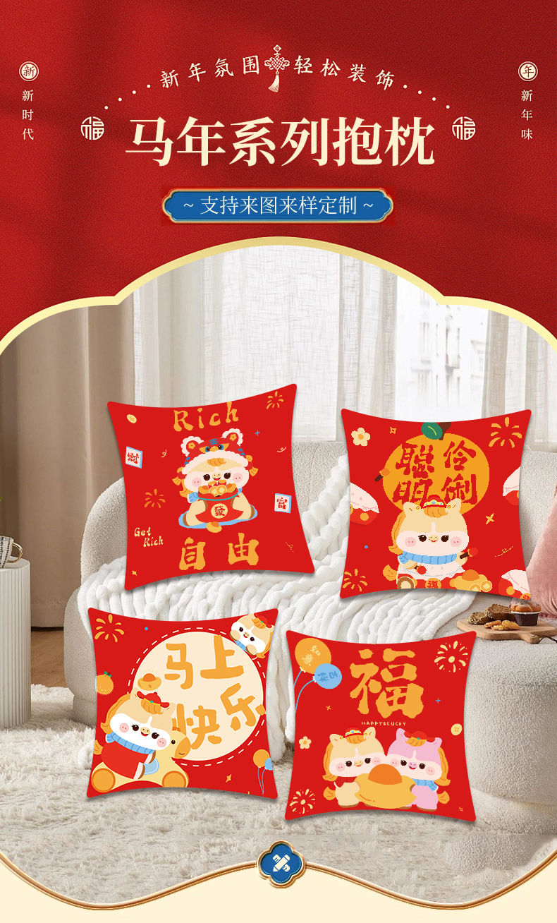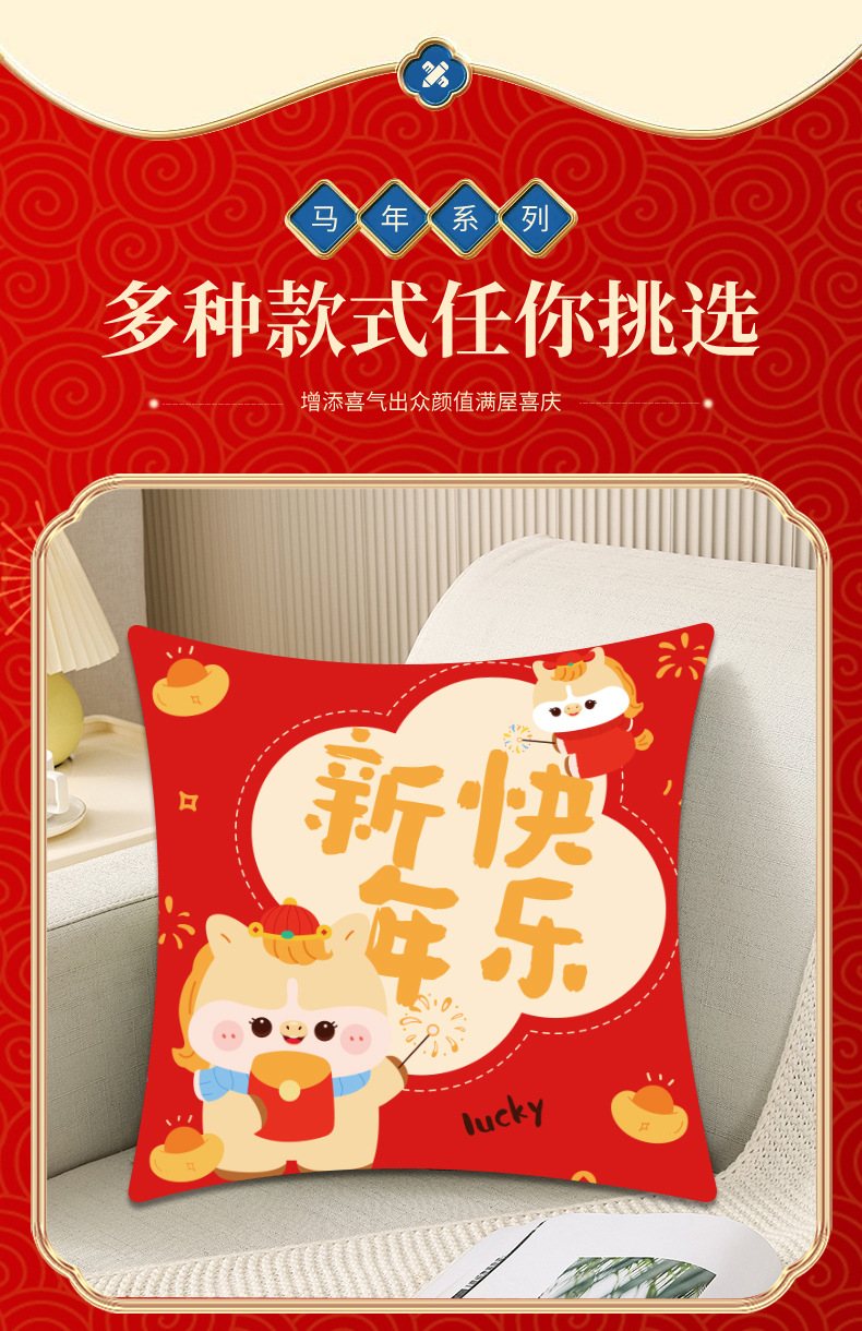 Новогодняя наволочка с символикой года лошади, красная подушка для декора, оптовая продажа для гостиной, кабинета, спальни
