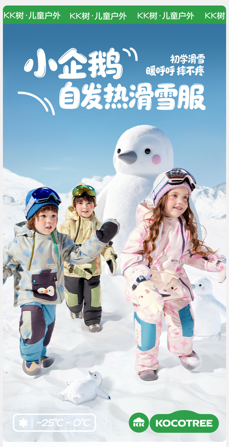 Детский лыжный костюм Kk Tree Теплый для мальчиков и девочек Отдельная лыжная куртка и брюки Трехзащитный для начинающих Анти-падение 2025 Новый зимний