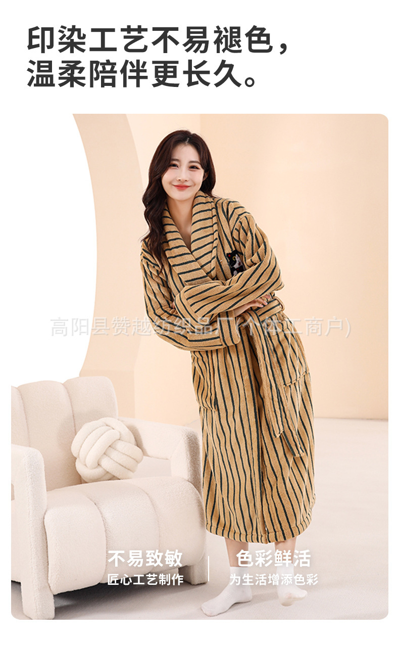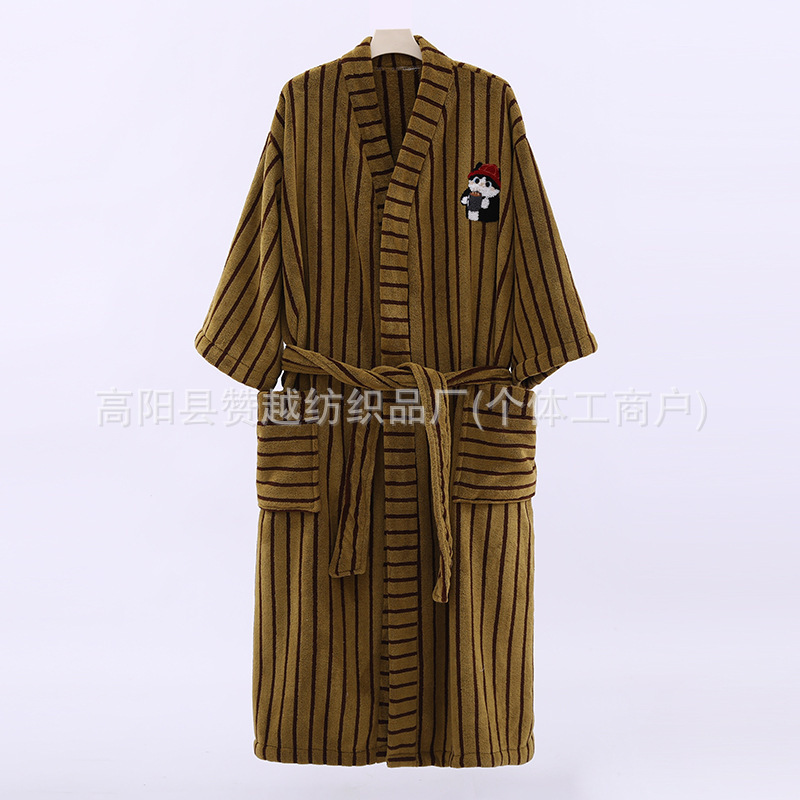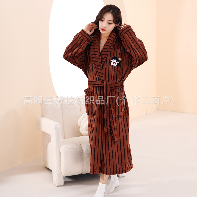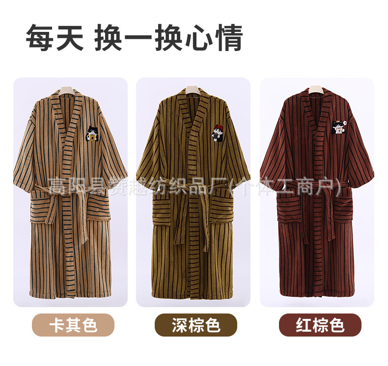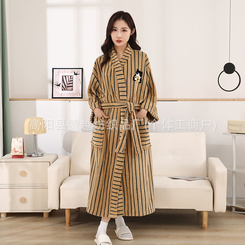 Халат с вертикальной полоской, кофейный кот, домашняя одежда для осени и зимы, утолщенное носимое полотенце для ванной, халат для пары с ремнями