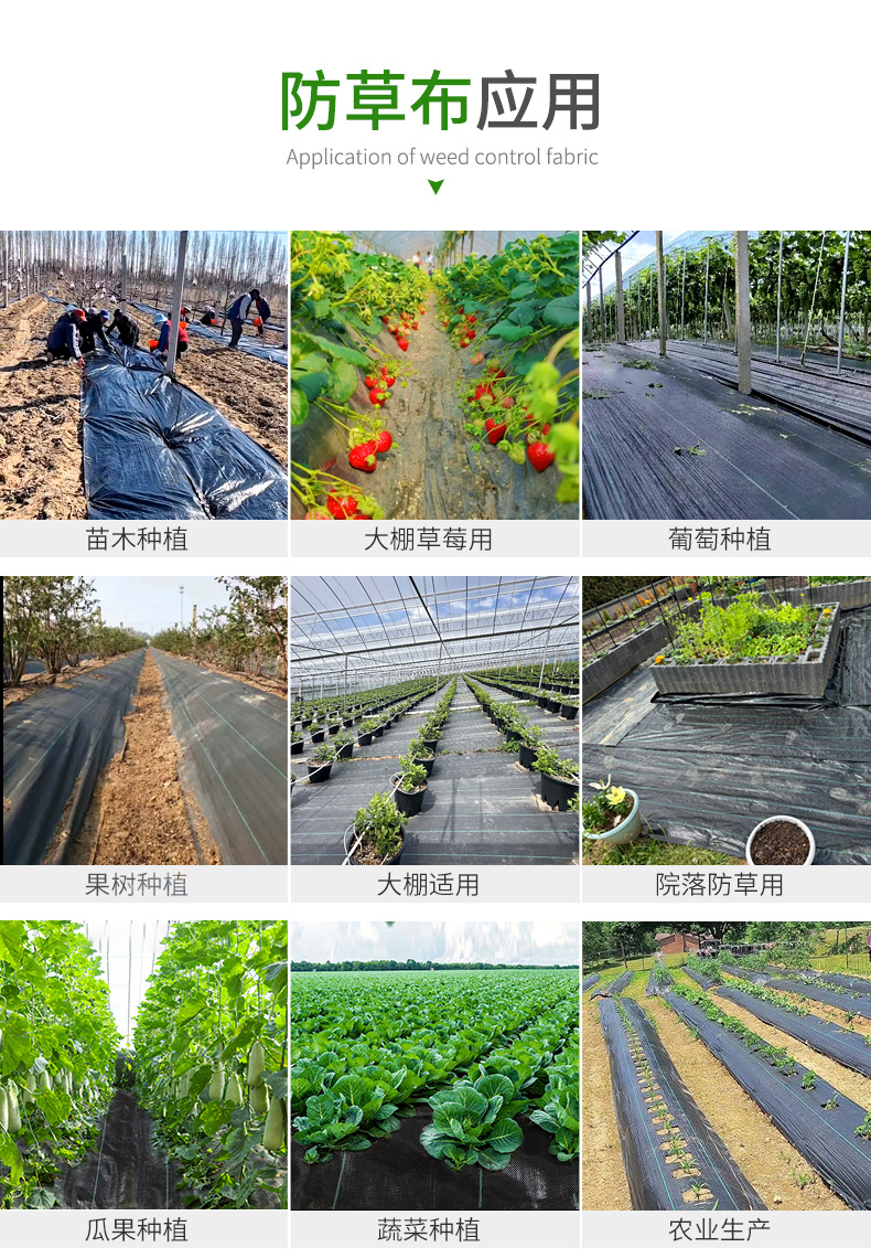 Оптовая водопроницаемая ткань для контроля сорняков, черная ткань для фруктовых деревьев, садовая мульча для теплиц