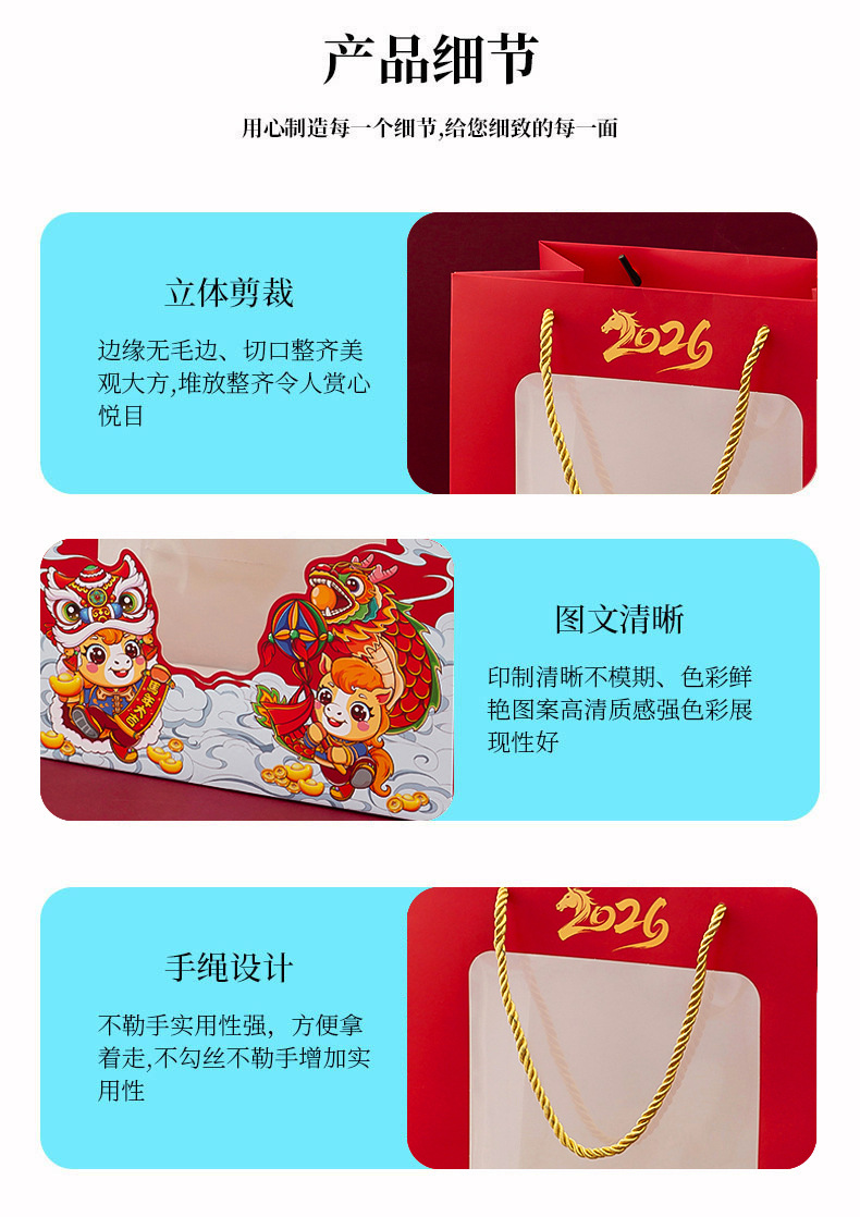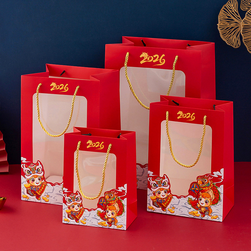 Прозрачная подарочная сумка с окном 2026 года, сумка для кукол, подарочная сумка на Новый год, высококачественная подарочная сумка, праздничная конфетная сумка