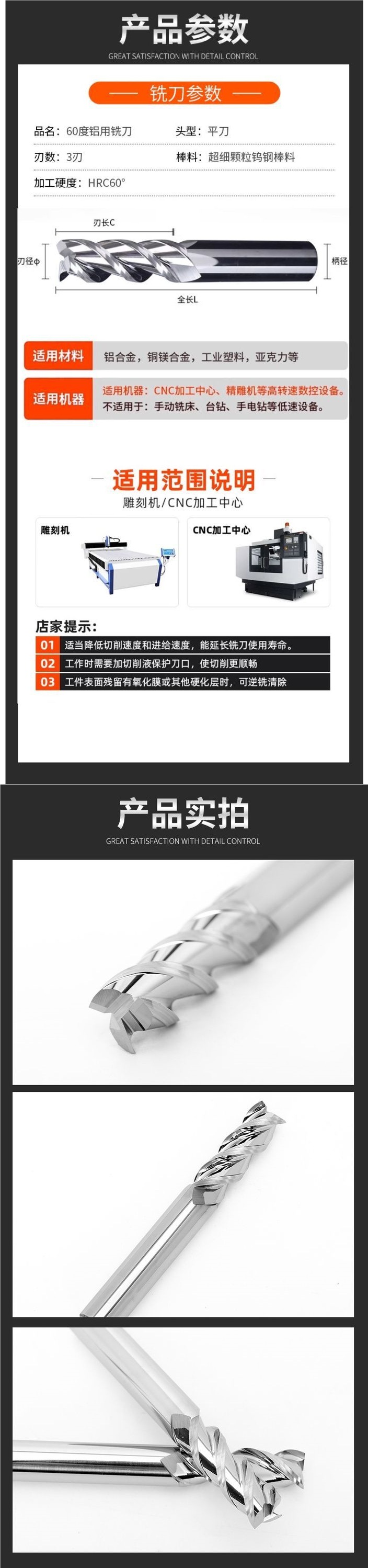 Фреза для алюминия с углом 60 градусов, 3-фланцевая, вольфрамовая сталь, карбидная, с высоким блеском, удлиненная, специальная фреза для алюминиевого сплава