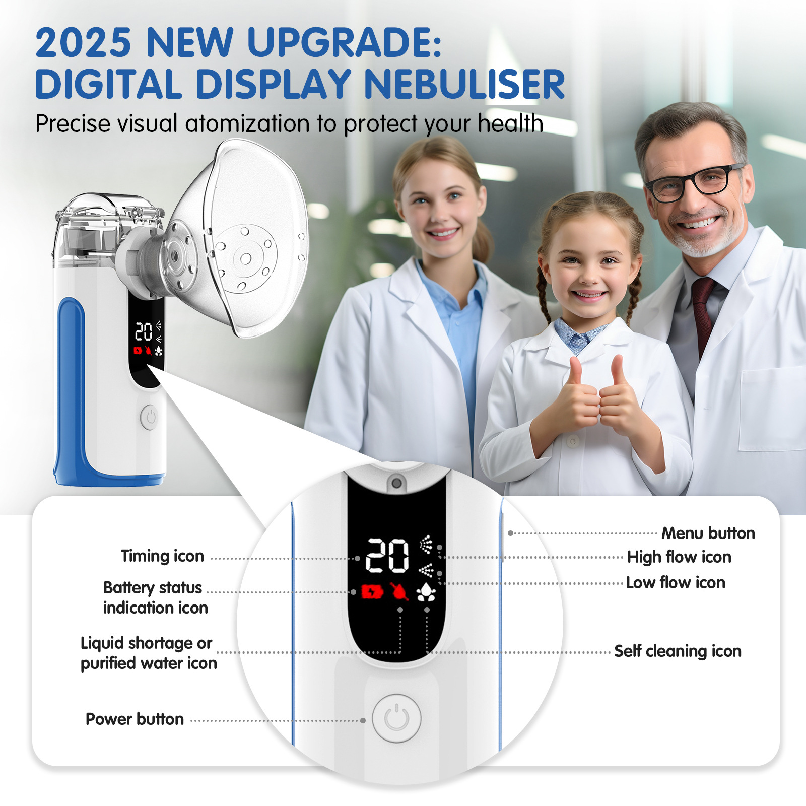 Новый цифровой дисплей ручной атомайзер портативный детский домашний микро-сетчатый атомайзер с функцией таймера для взрослых