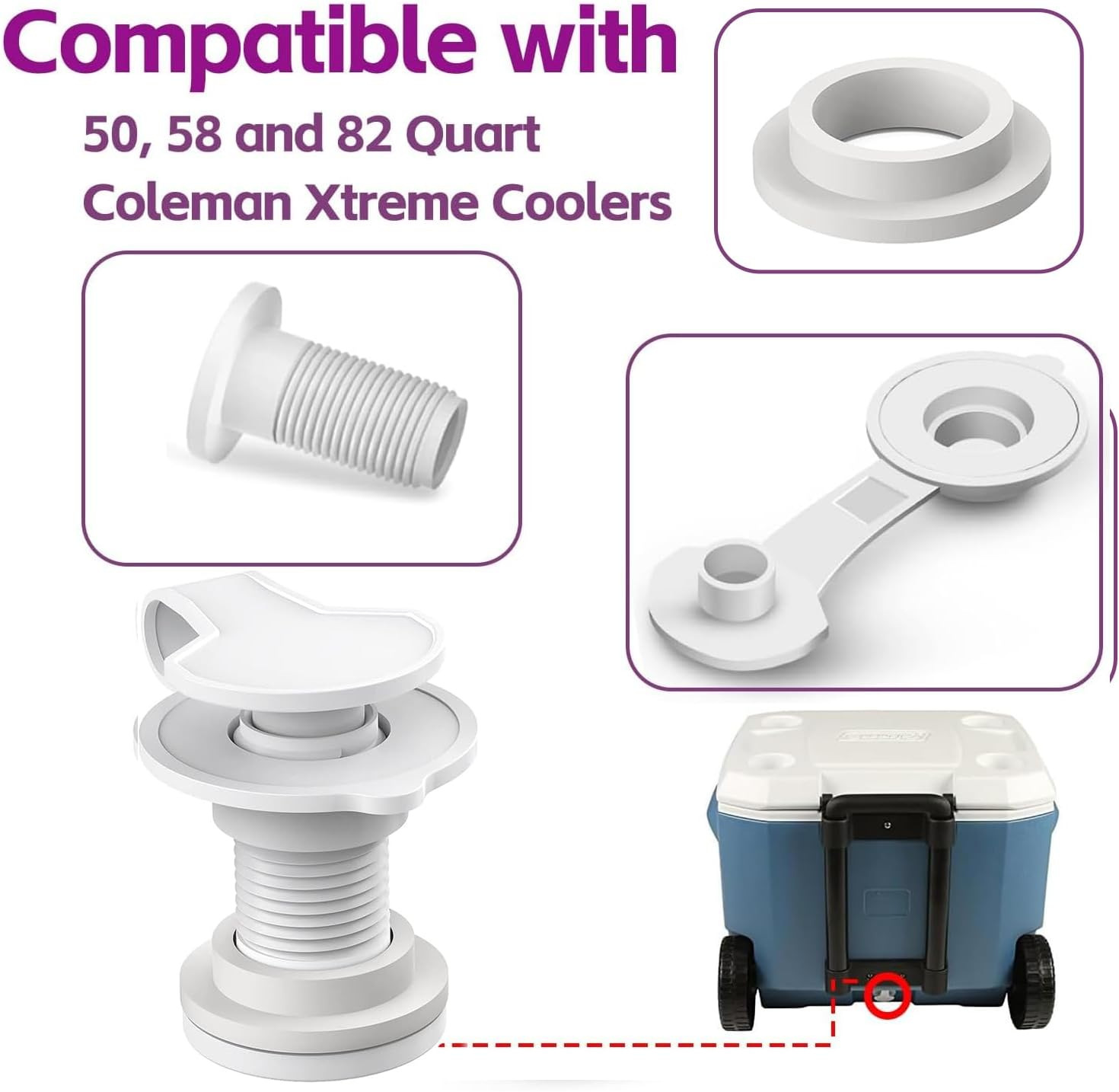 coleman冷却器排水塞组件1英寸1.5英寸轴长 ,用于 Coleman 科勒曼 50, 58、82等QT