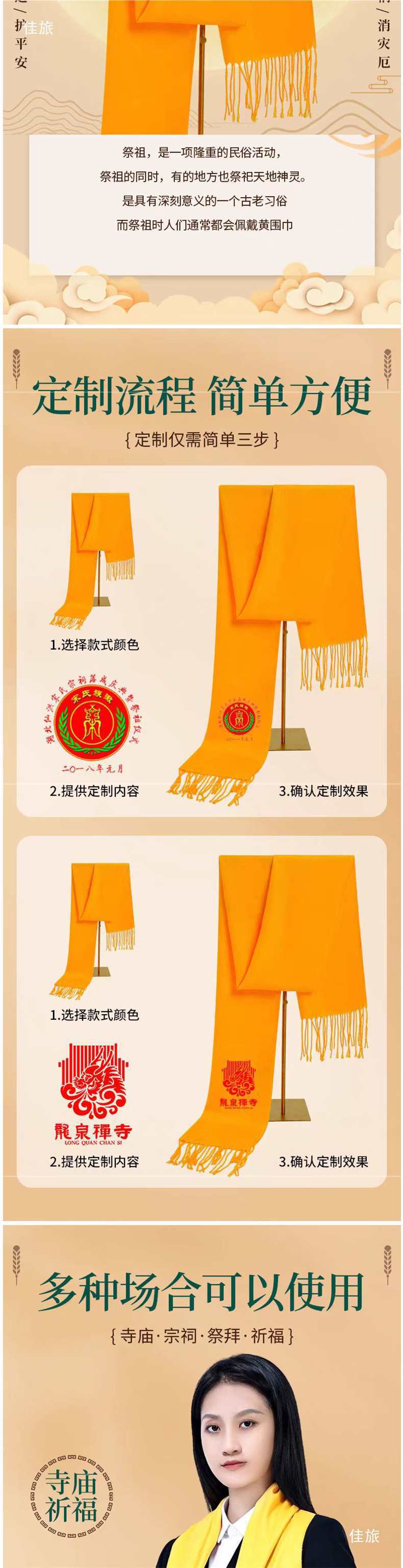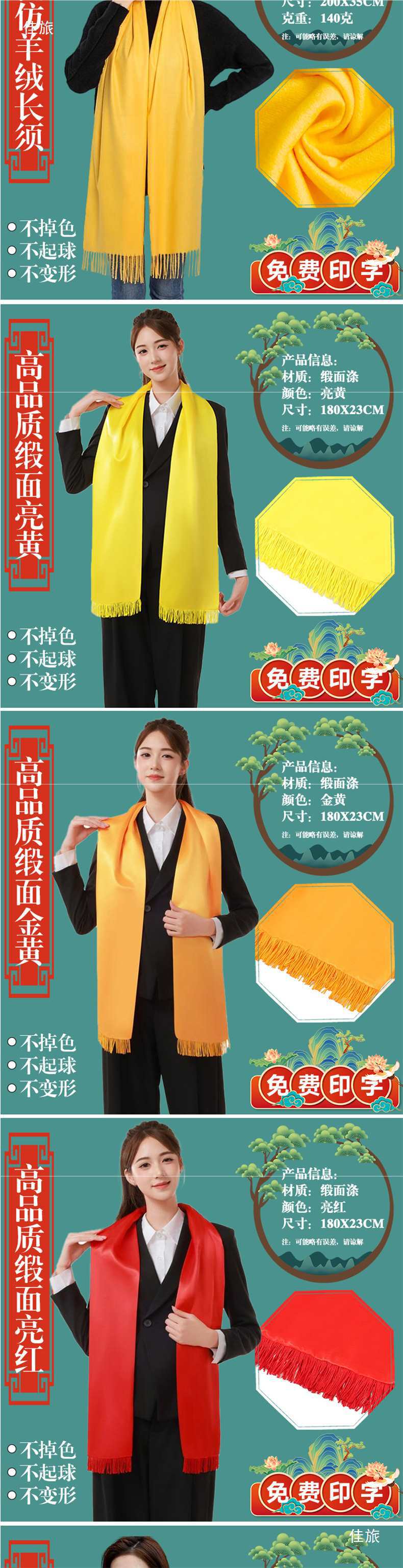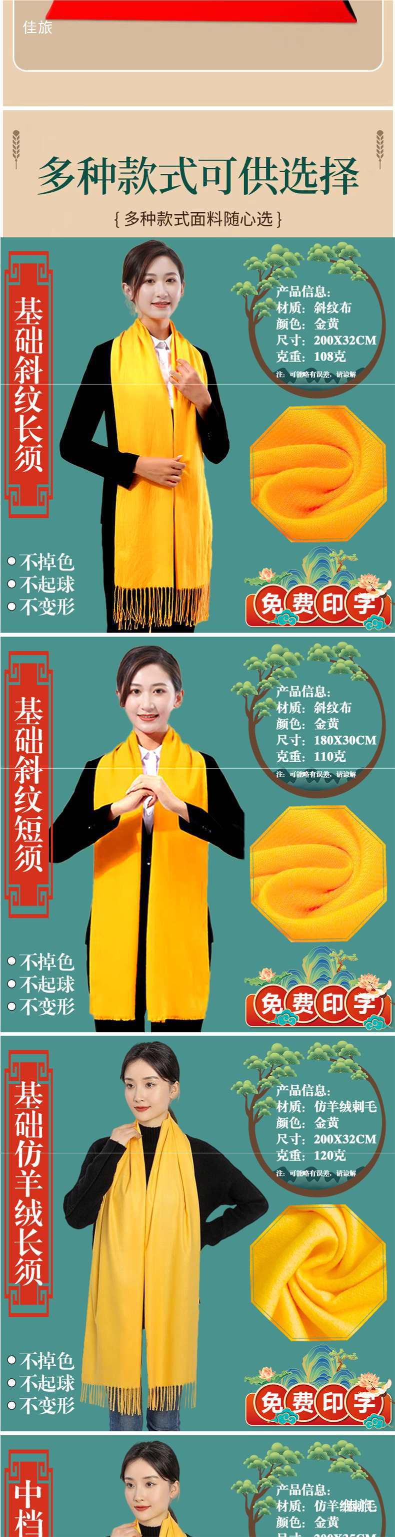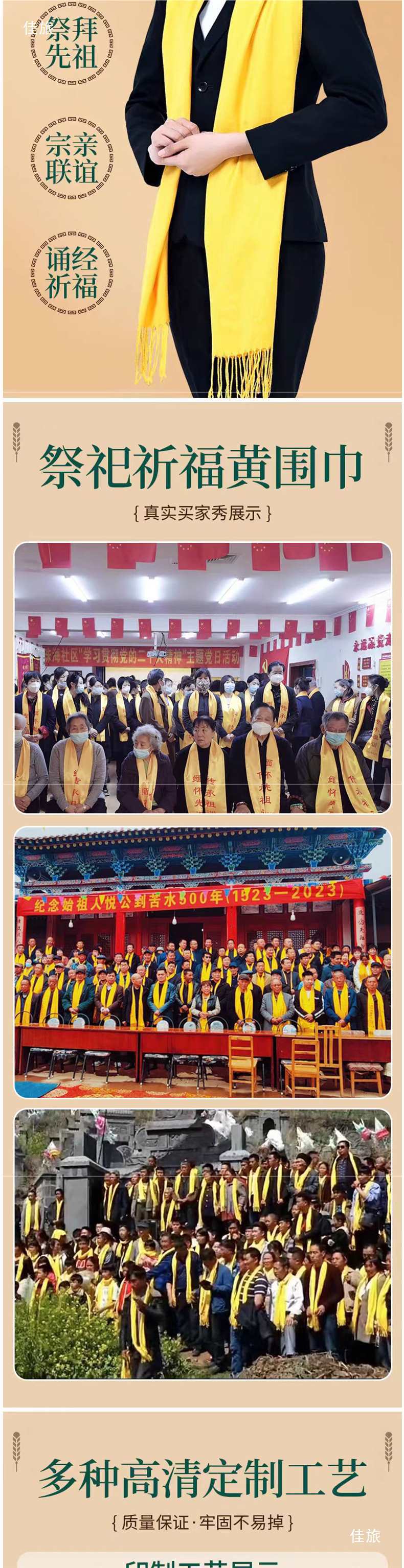 Желтый шарф для поклонения предкам, желтая лента для семейной ассоциации, храмового поклонения, печатные генеалогические мероприятия