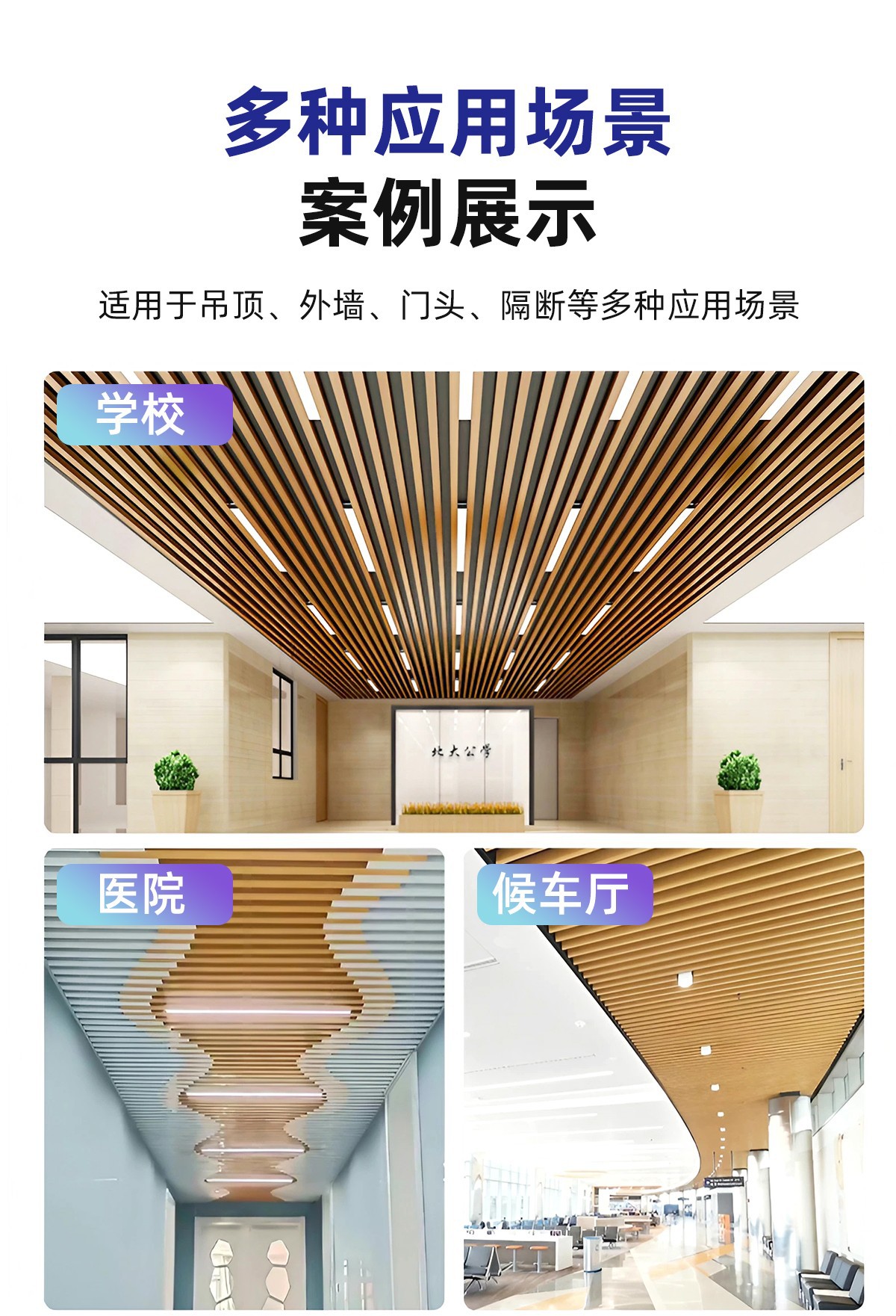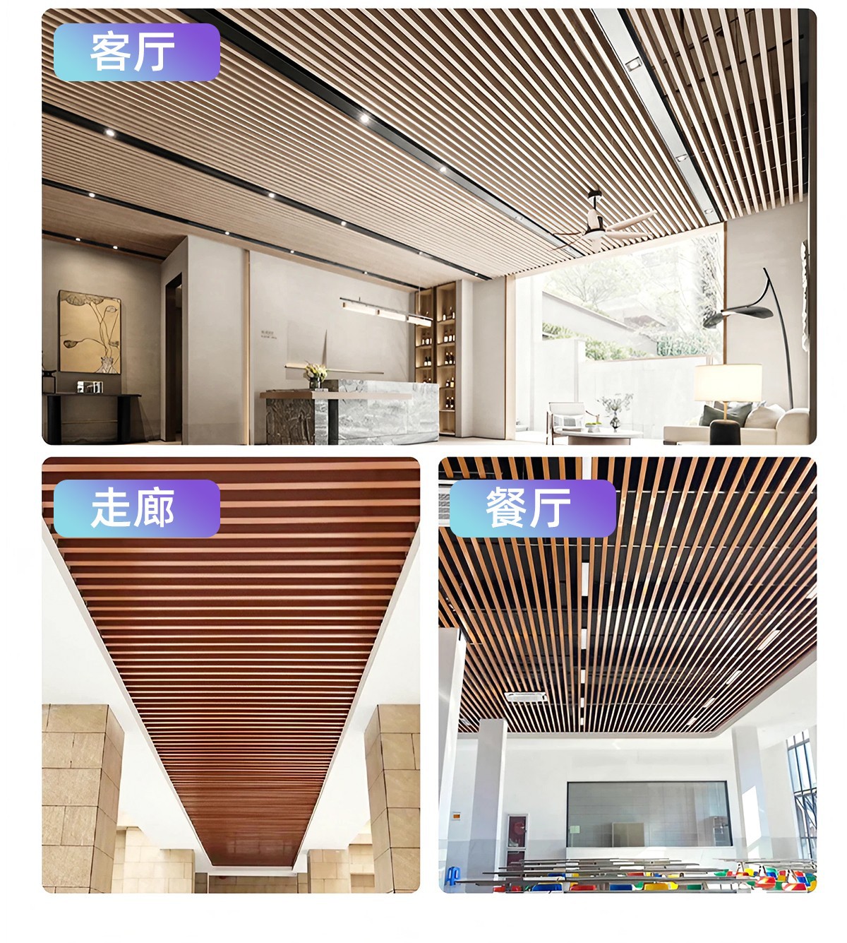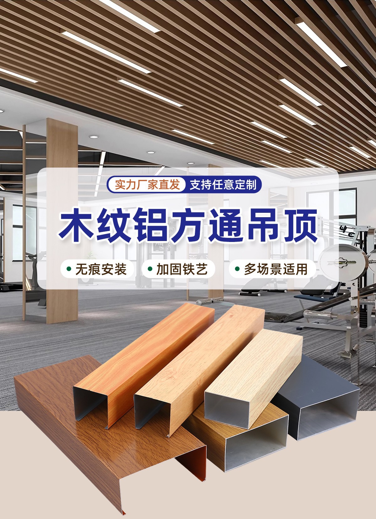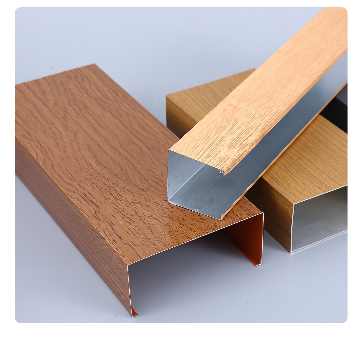 Алюминиевый квадратный потолок с древесной текстурой, алюминиевый квадратный профиль, алюминиевый сплав, U-образный паз, решетка для школьного коридора, алюминиевый материал
