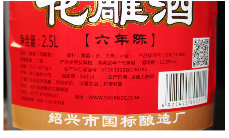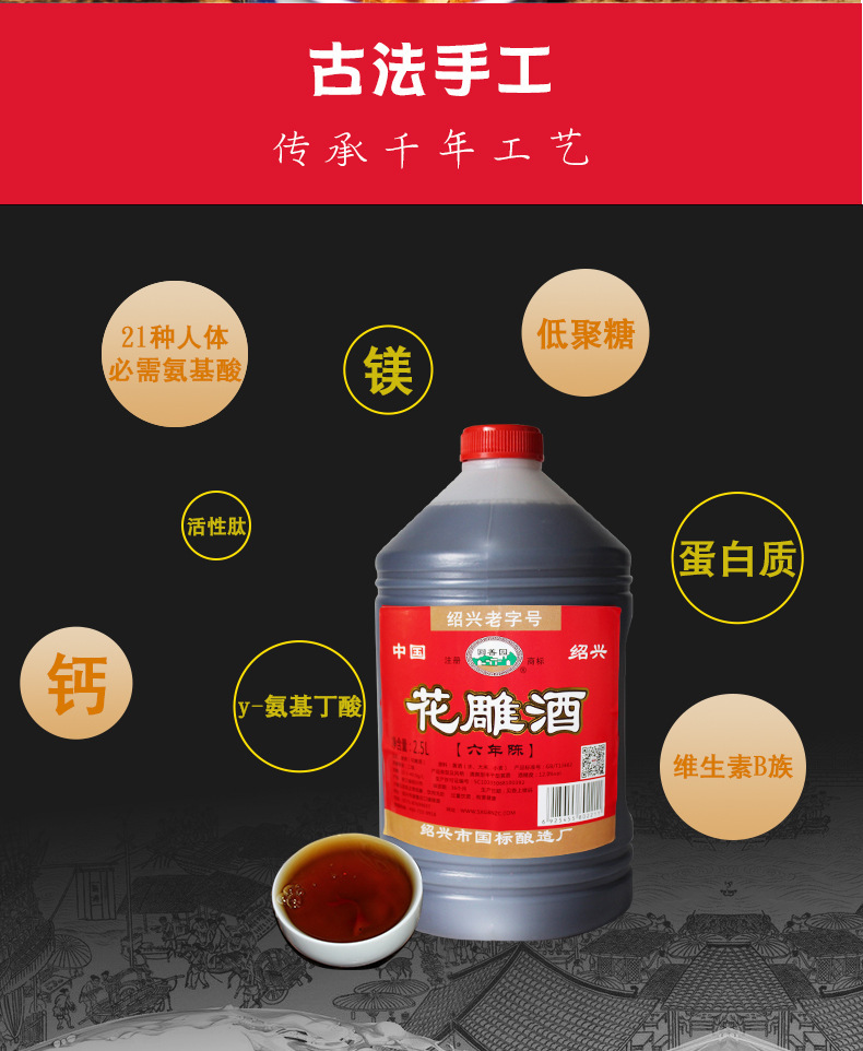 Шаосинь Хуадяо Вино Шестилетнее В бочке 2.5 Литра Клейкое Рисовое Вино 2.5кг для Кулинарии, Приправы и Личного Употребления