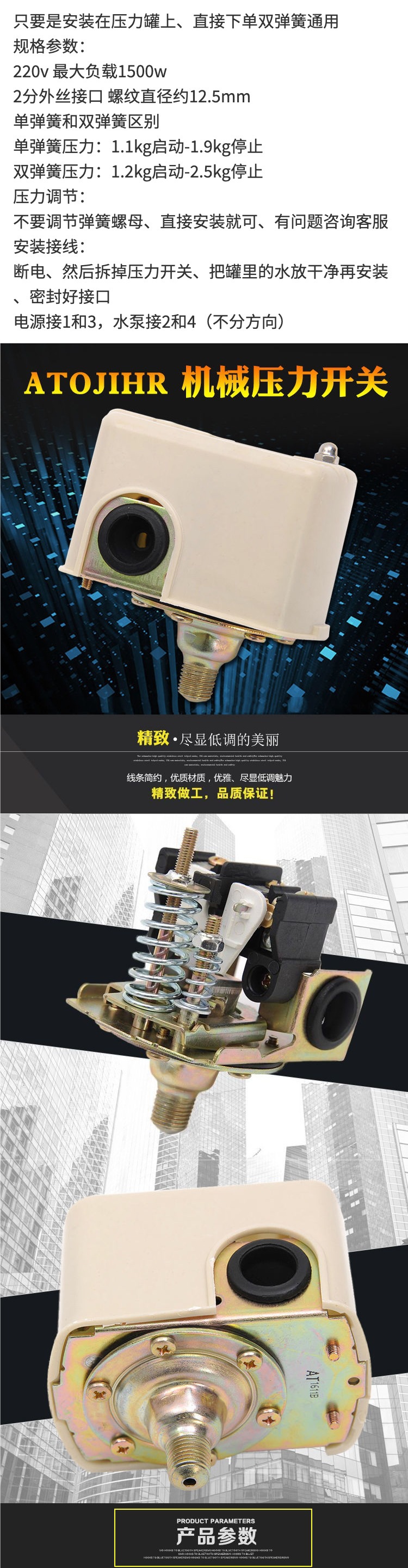Бесподъемный резервуар для водоснабжения с механическим выключателем, полностью автоматический контроллер водяного насоса, регулируемый 220V, 2-точечный интерфейс