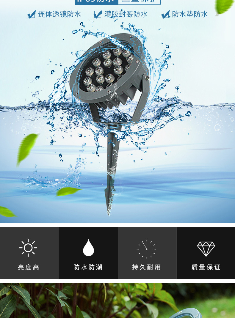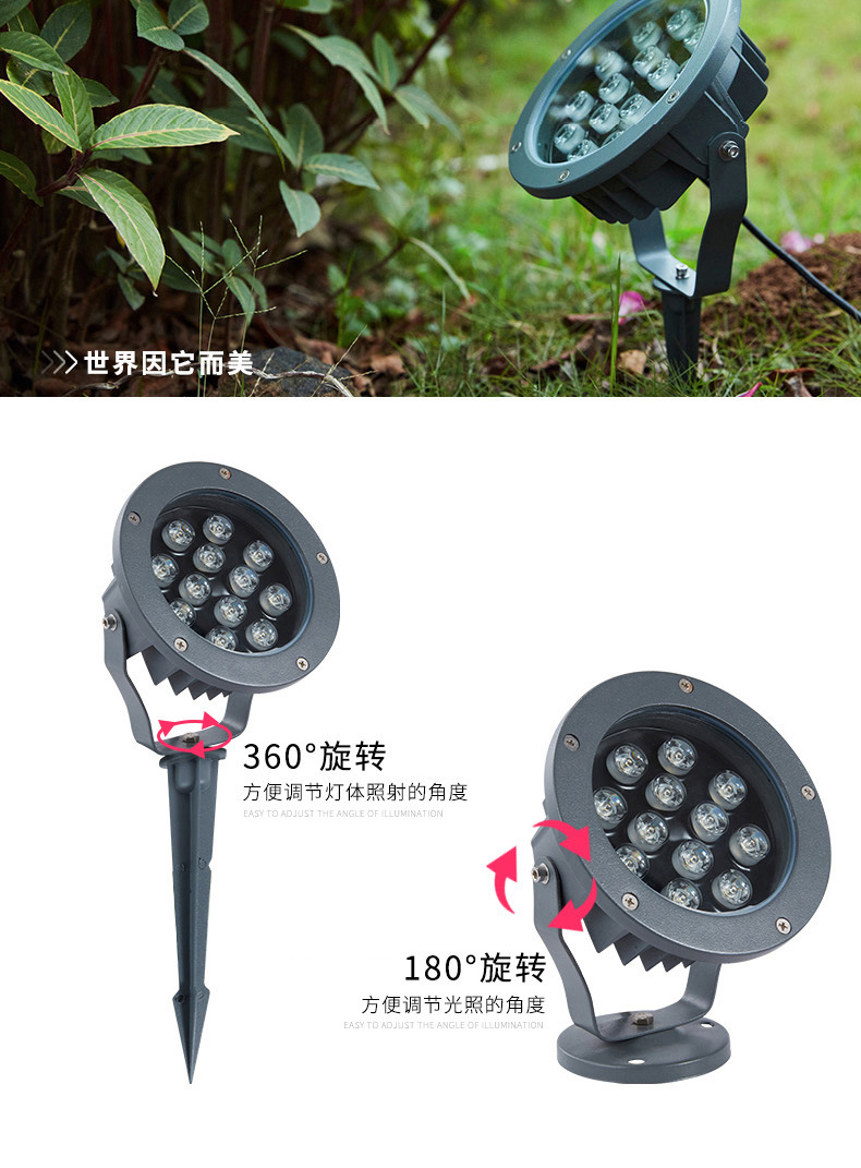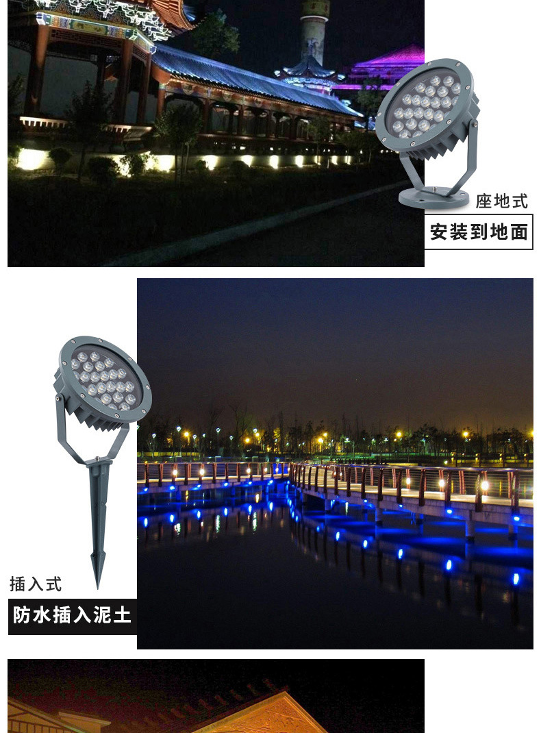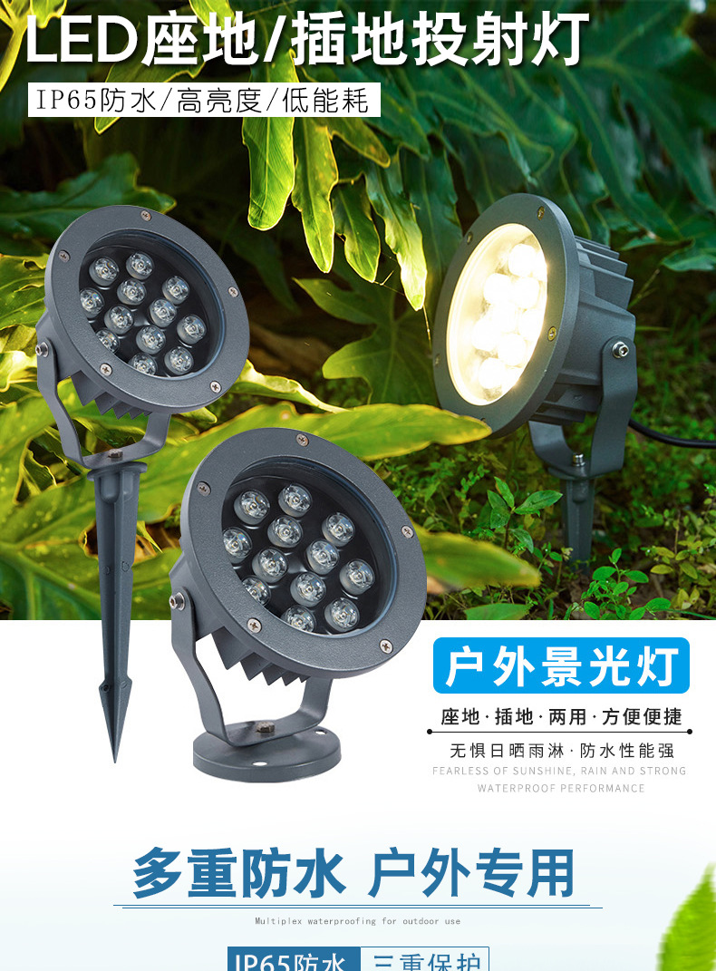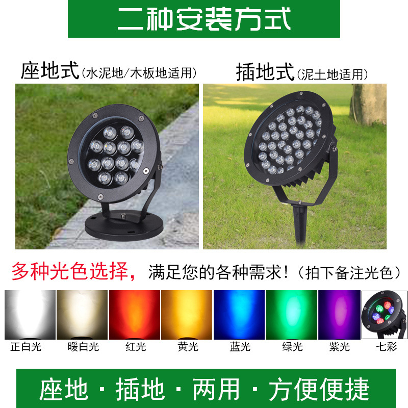 LED投光灯射灯户外照树灯彩色射树灯插地防水景观草坪绿化庭院灯