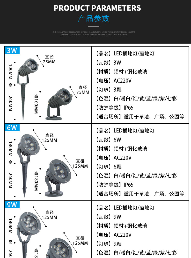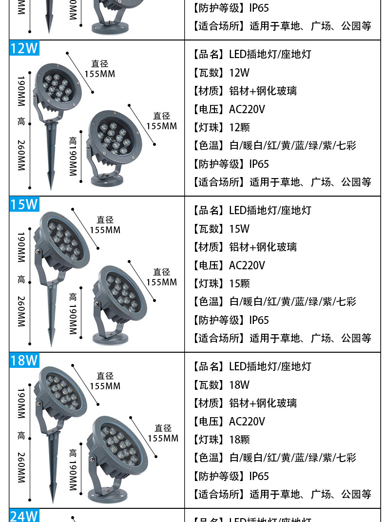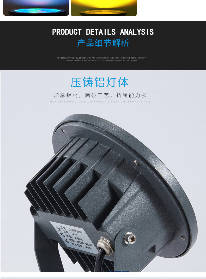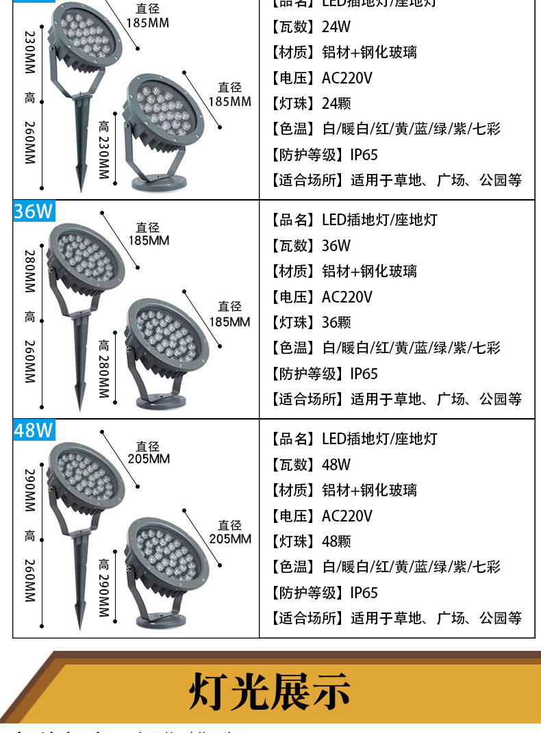 LED投光灯射灯户外照树灯彩色射树灯插地防水景观草坪绿化庭院灯