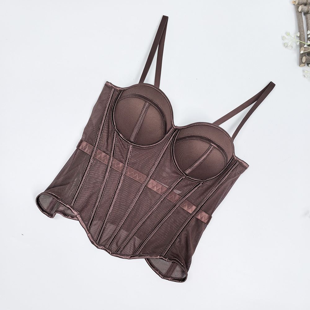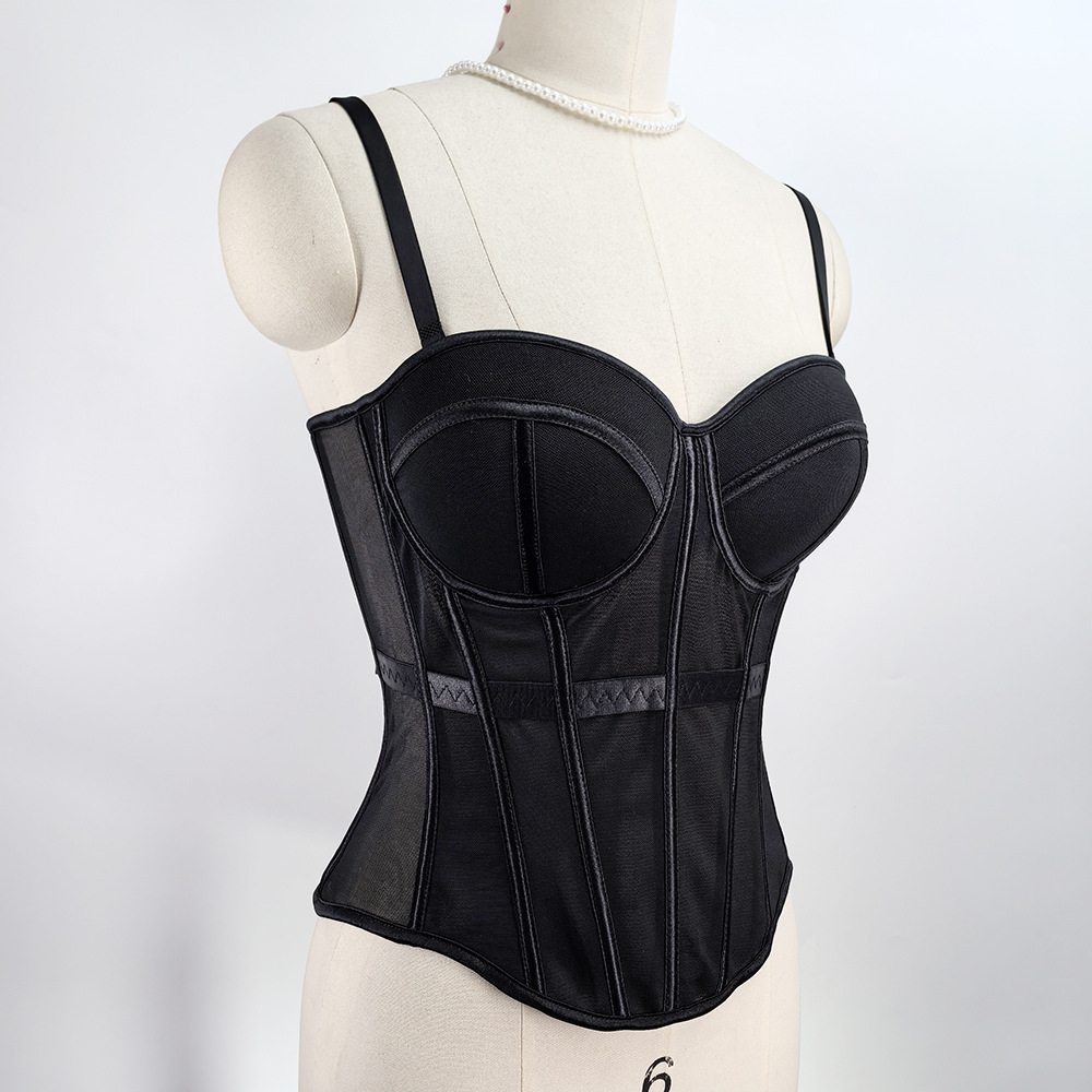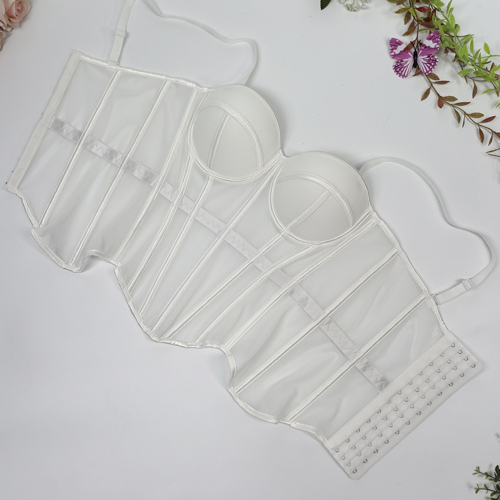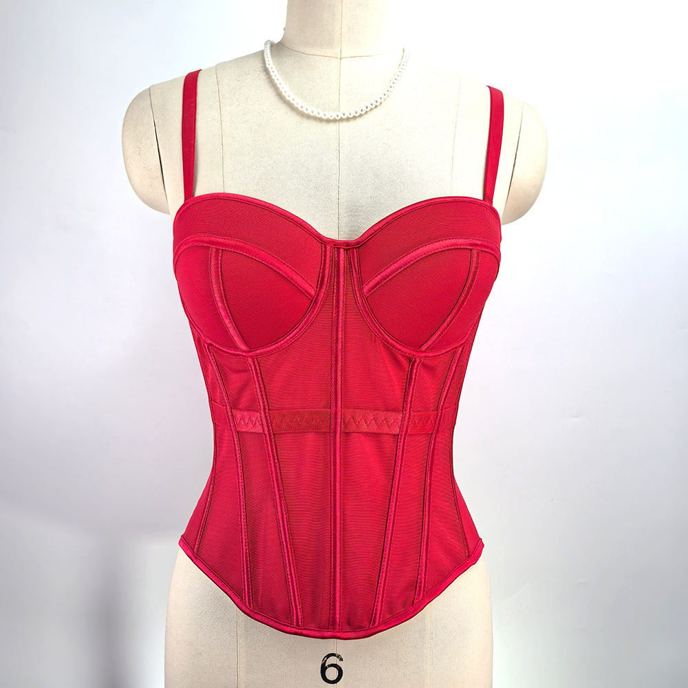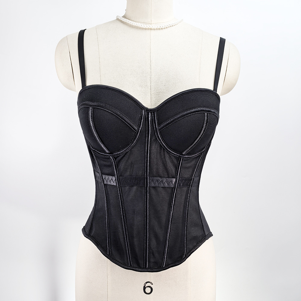 欧美纯欲鱼骨胸衣针织网纱纯色吊带背心显瘦美背带胸垫外穿胸衣