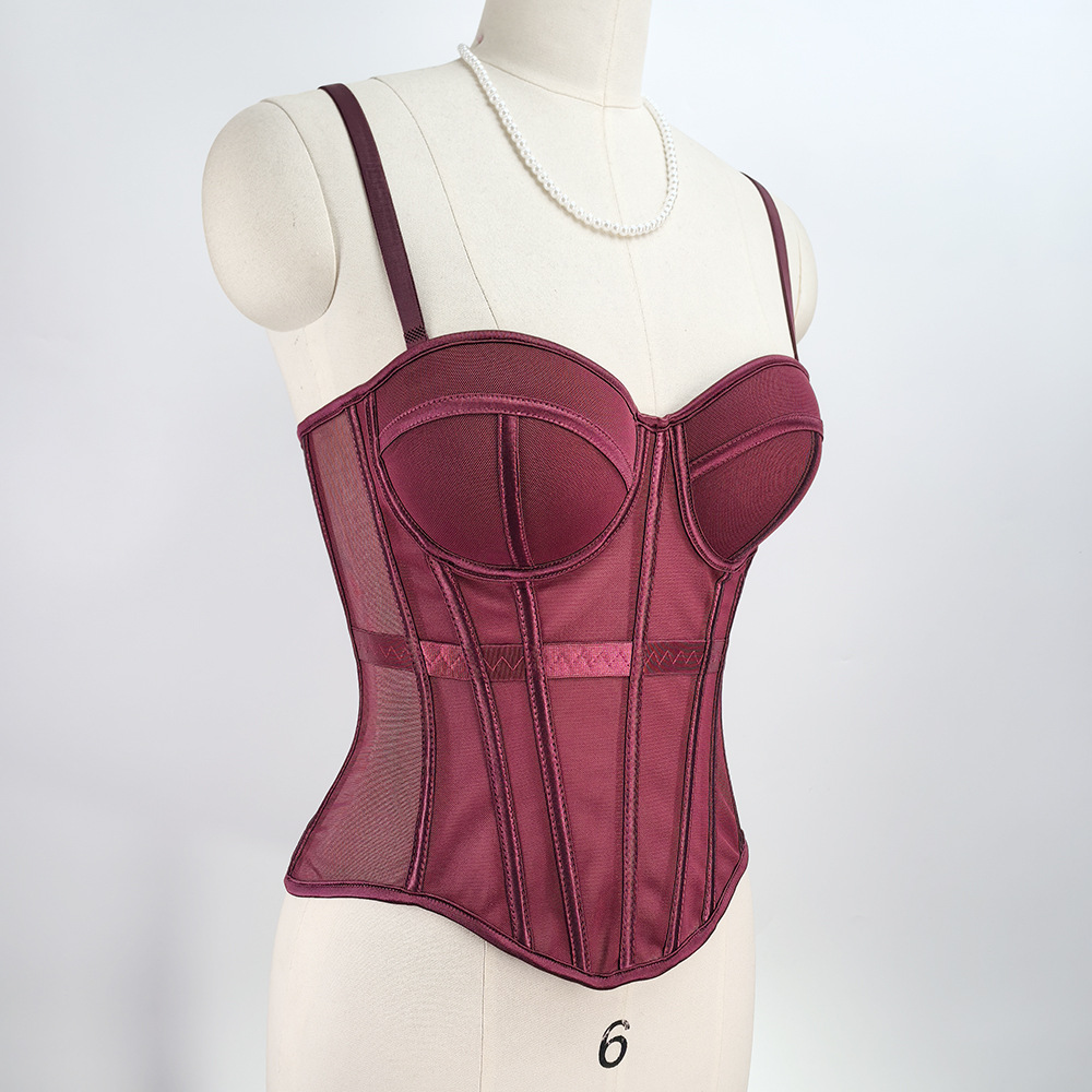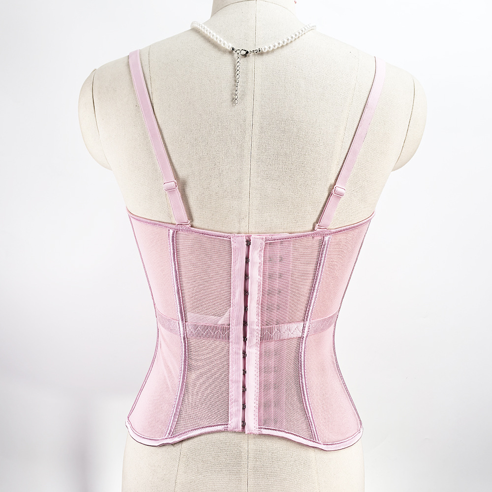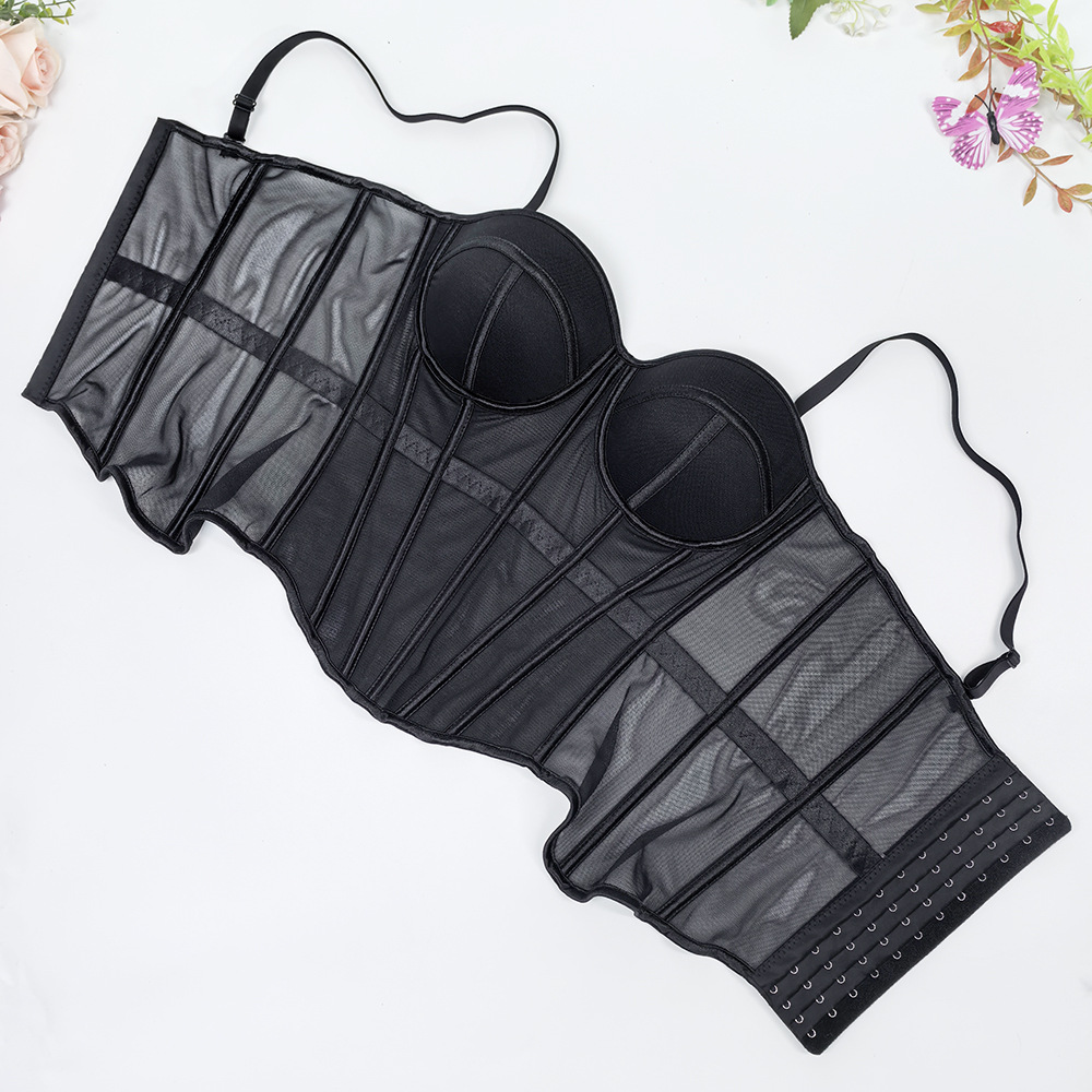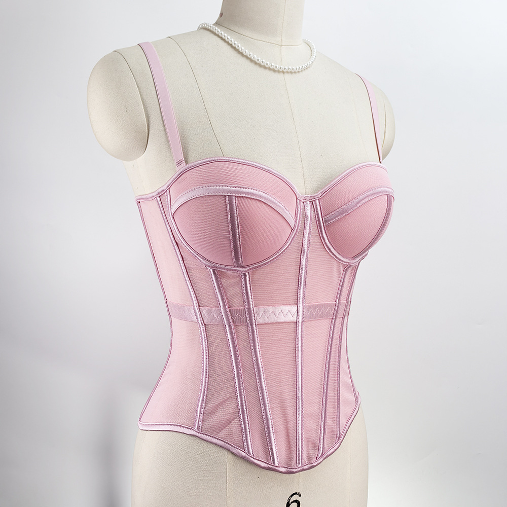 欧美纯欲鱼骨胸衣针织网纱纯色吊带背心显瘦美背带胸垫外穿胸衣