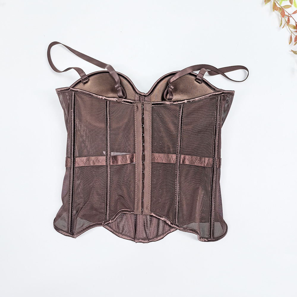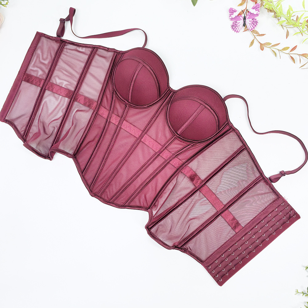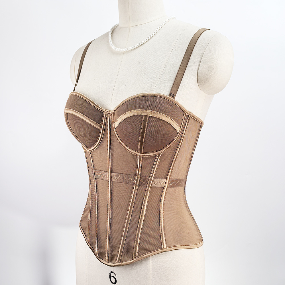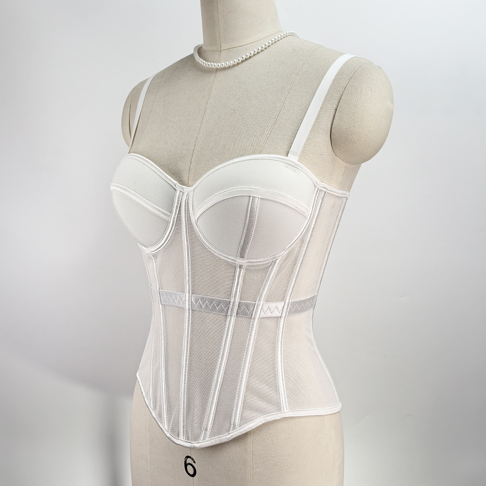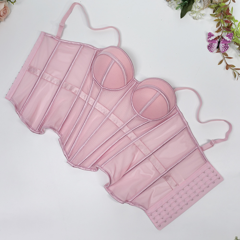 欧美纯欲鱼骨胸衣针织网纱纯色吊带背心显瘦美背带胸垫外穿胸衣