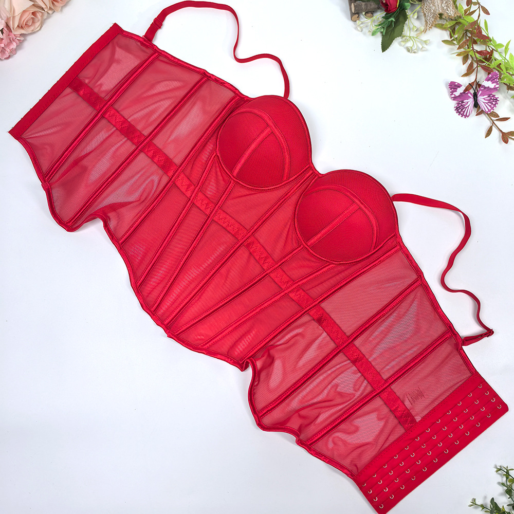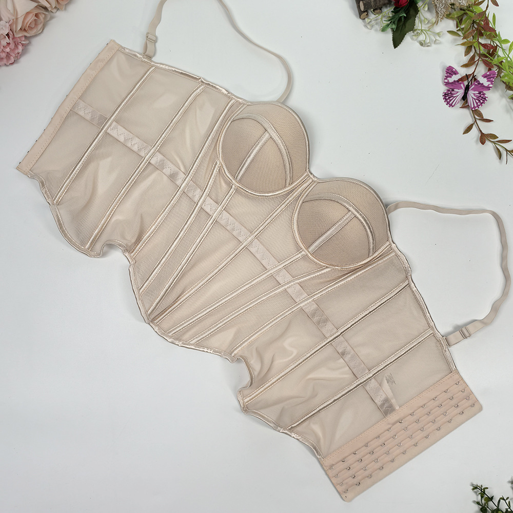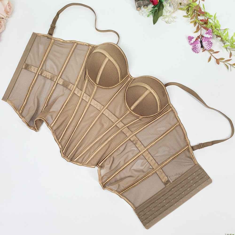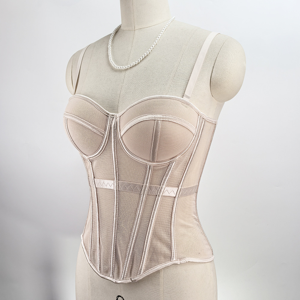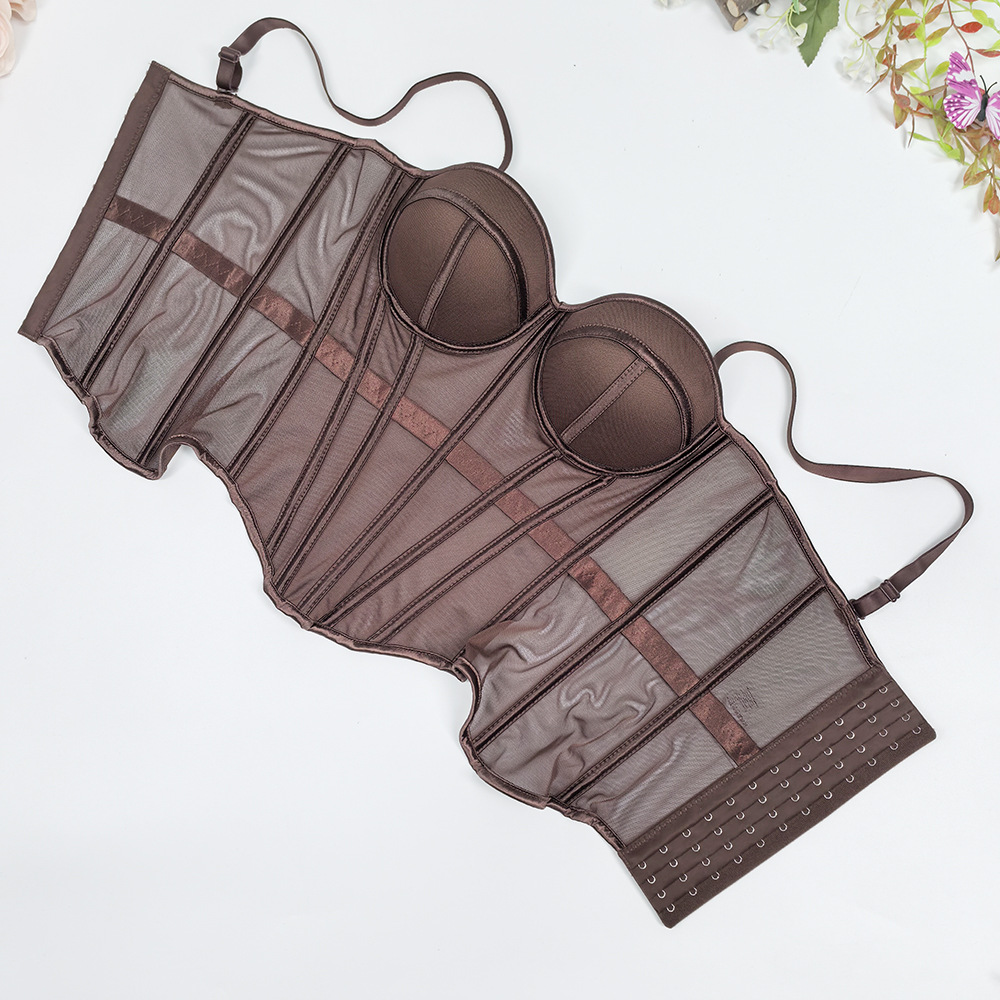 欧美纯欲鱼骨胸衣针织网纱纯色吊带背心显瘦美背带胸垫外穿胸衣