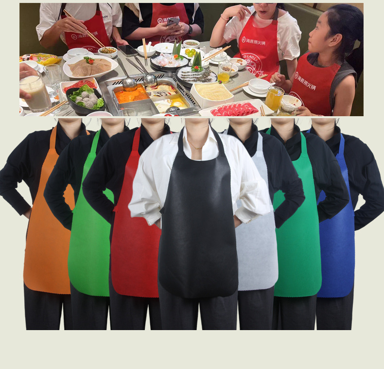 Одноразовый фартук для ресторана хот-пот, еда с раками, для гостей, взрослых, с карманом, нетканый материал, печать логотипа на заказ