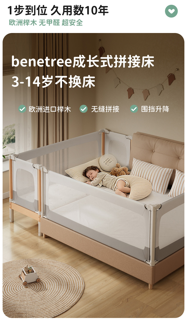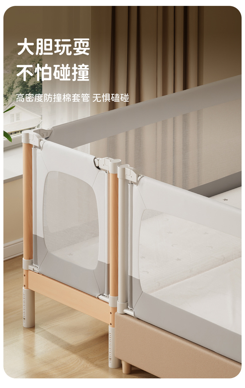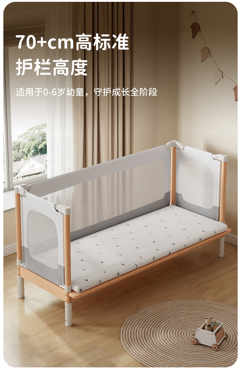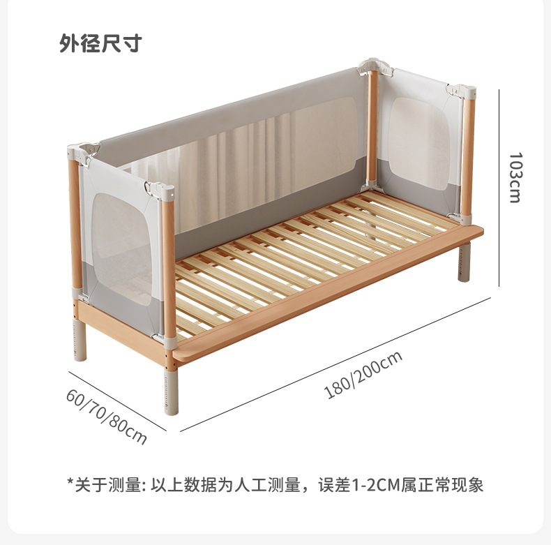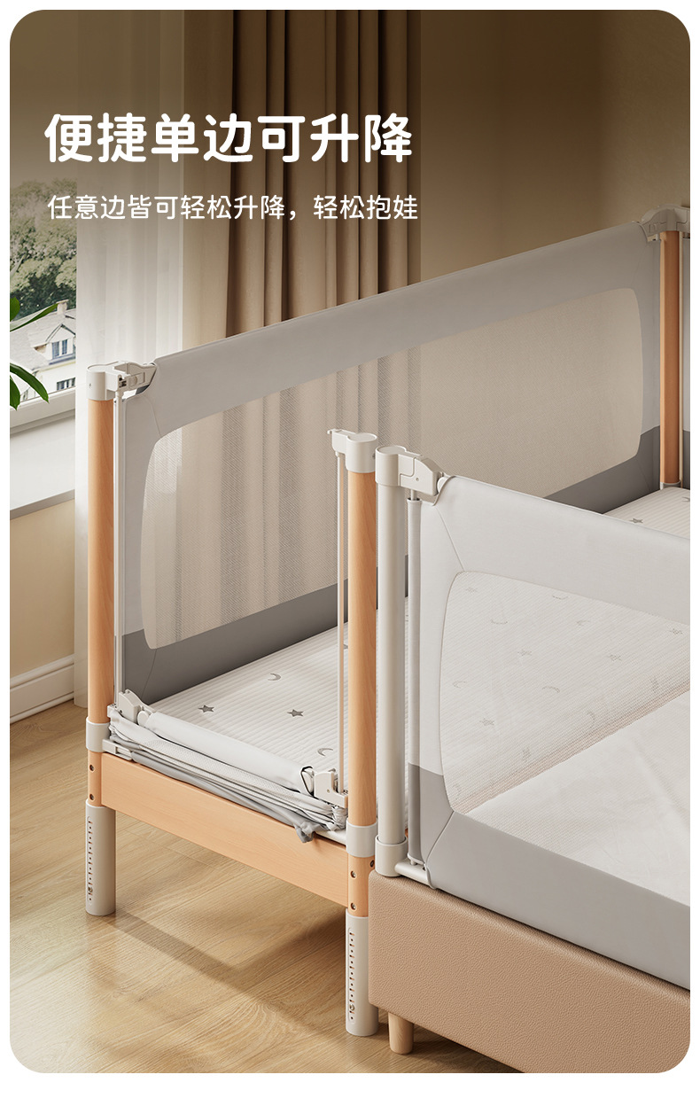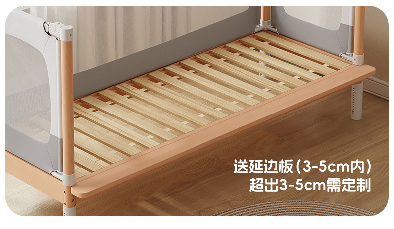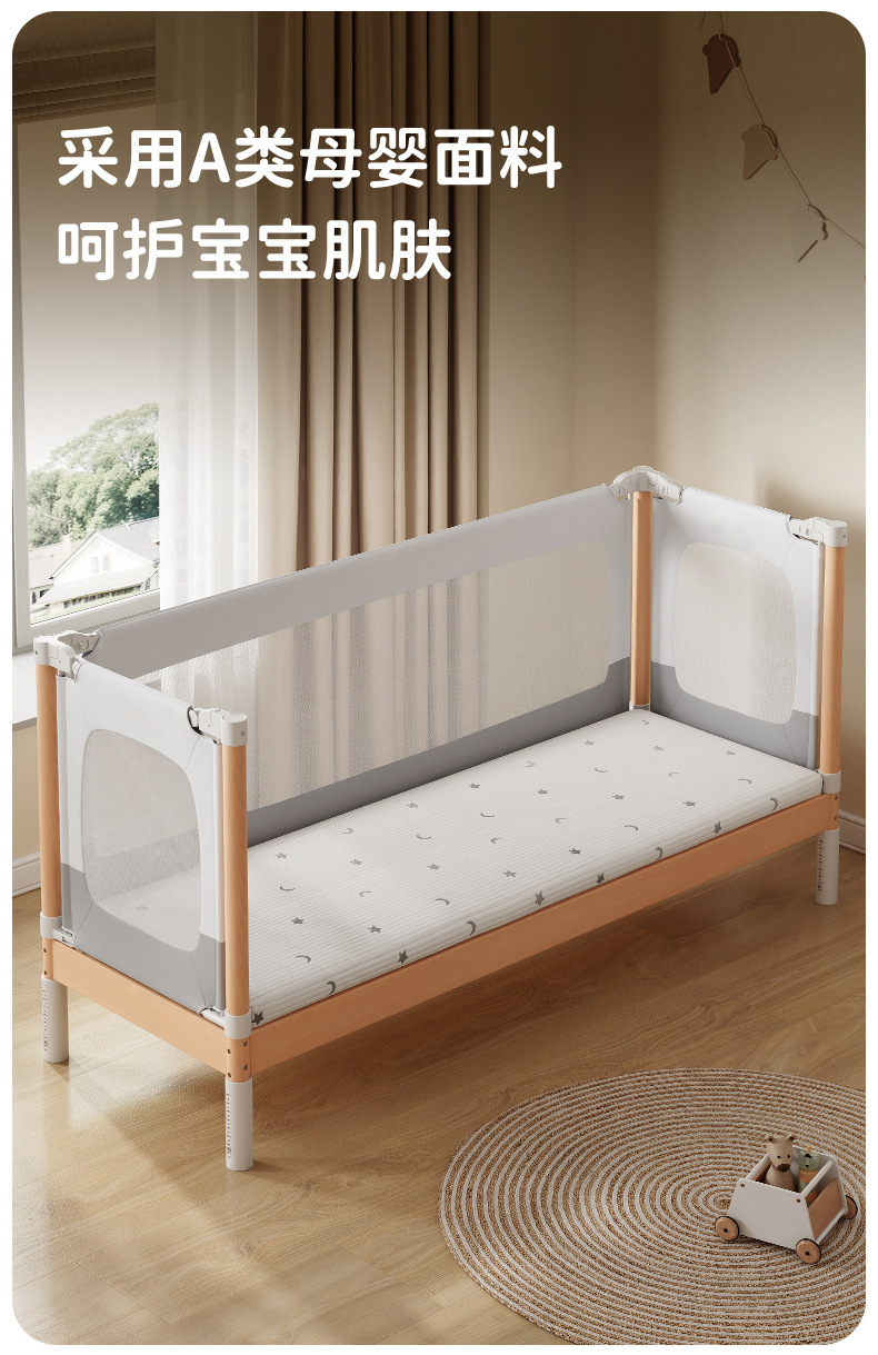 Кроватка из бука с расширенным бортиком, цельнодеревянная, бесшовная, подъемная, для детей