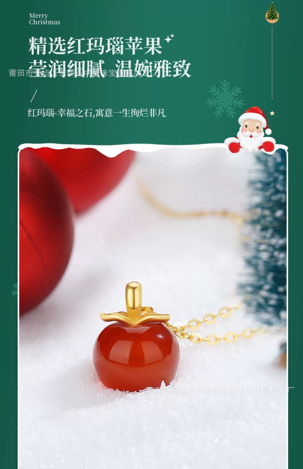 Подвеска с яблоком из красного агата, инкрустированная 18K золотыми листьями, доступная роскошь, нишевое украшение, подарок на Рождественский вечер