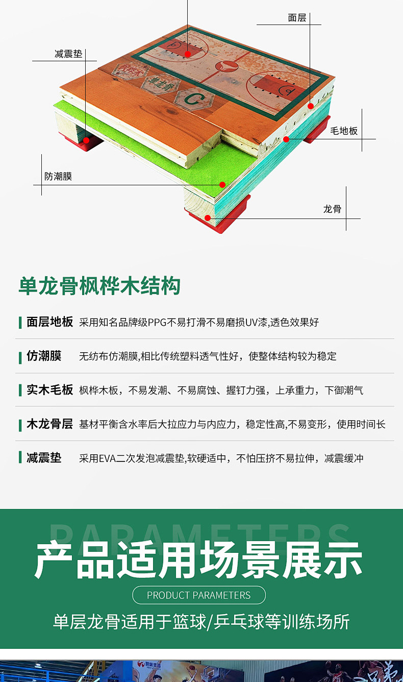 Внутреннее спортивное деревянное покрытие для баскетбольного зала, бадминтонного зала, сцены, гимнастического зала