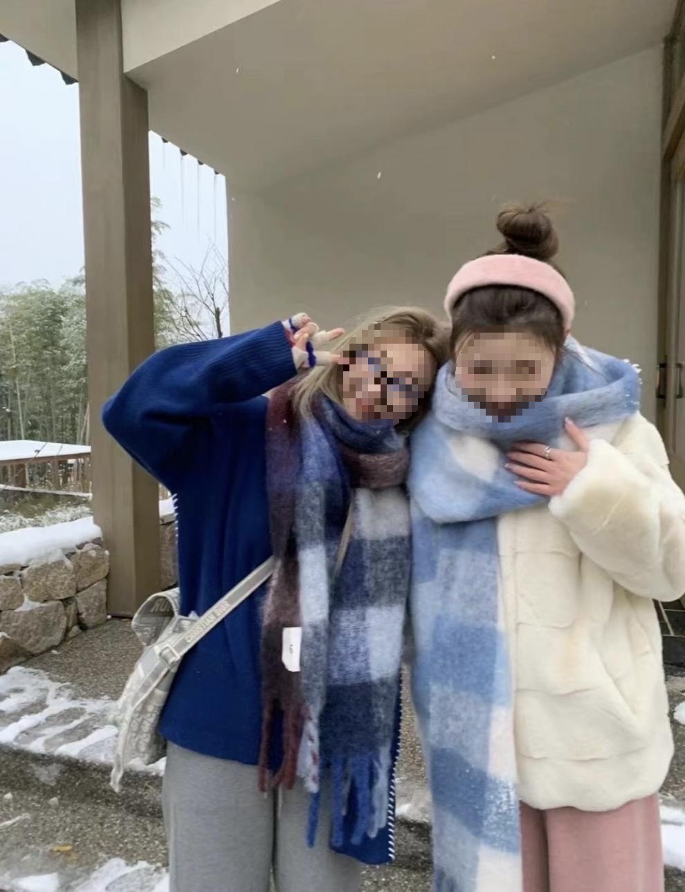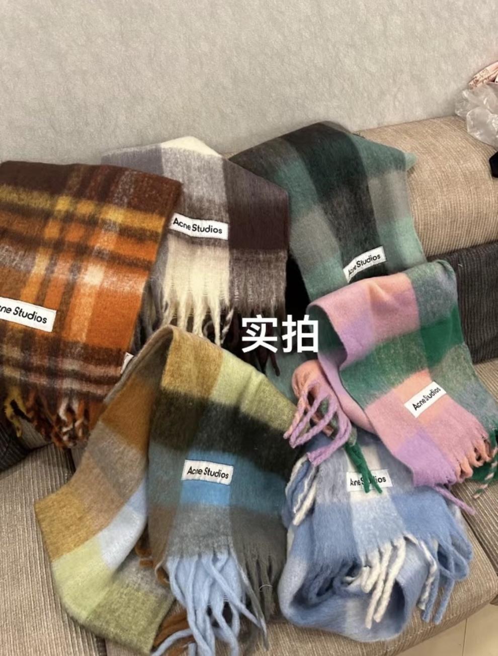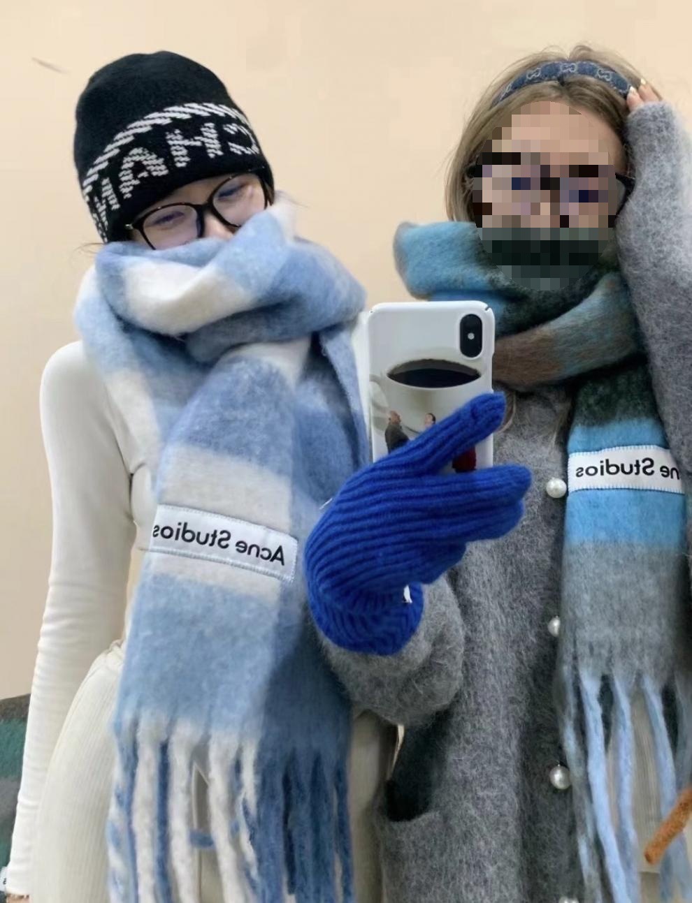 Осенне-зимний новый утолщенный теплый шарф в радужную клетку, европейский и американский, с петлями, толстыми кистями и цветными блоками