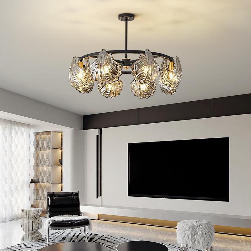 Завод Zhongshan Выставочный зал Вся медь Современная легкая роскошь Высококачественная серая люстра Янтарное художественное стекло Люстра для гостиной столовой