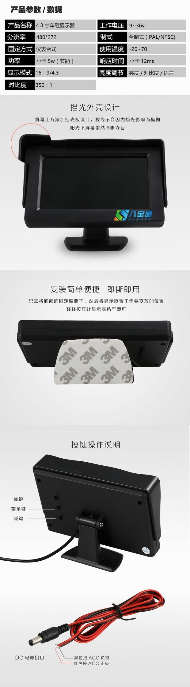 ![]() | 4.3inch monitor (thick model) high definition and highlight | ¥88.0 / ≈ 1 071 ₽ | 37 | 5956053257213 | |